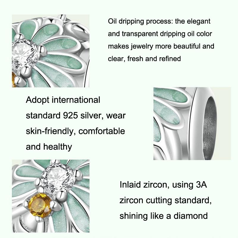 • 1 x 925 Sterling Silver Green Gradient Daisy Bee Bracelet