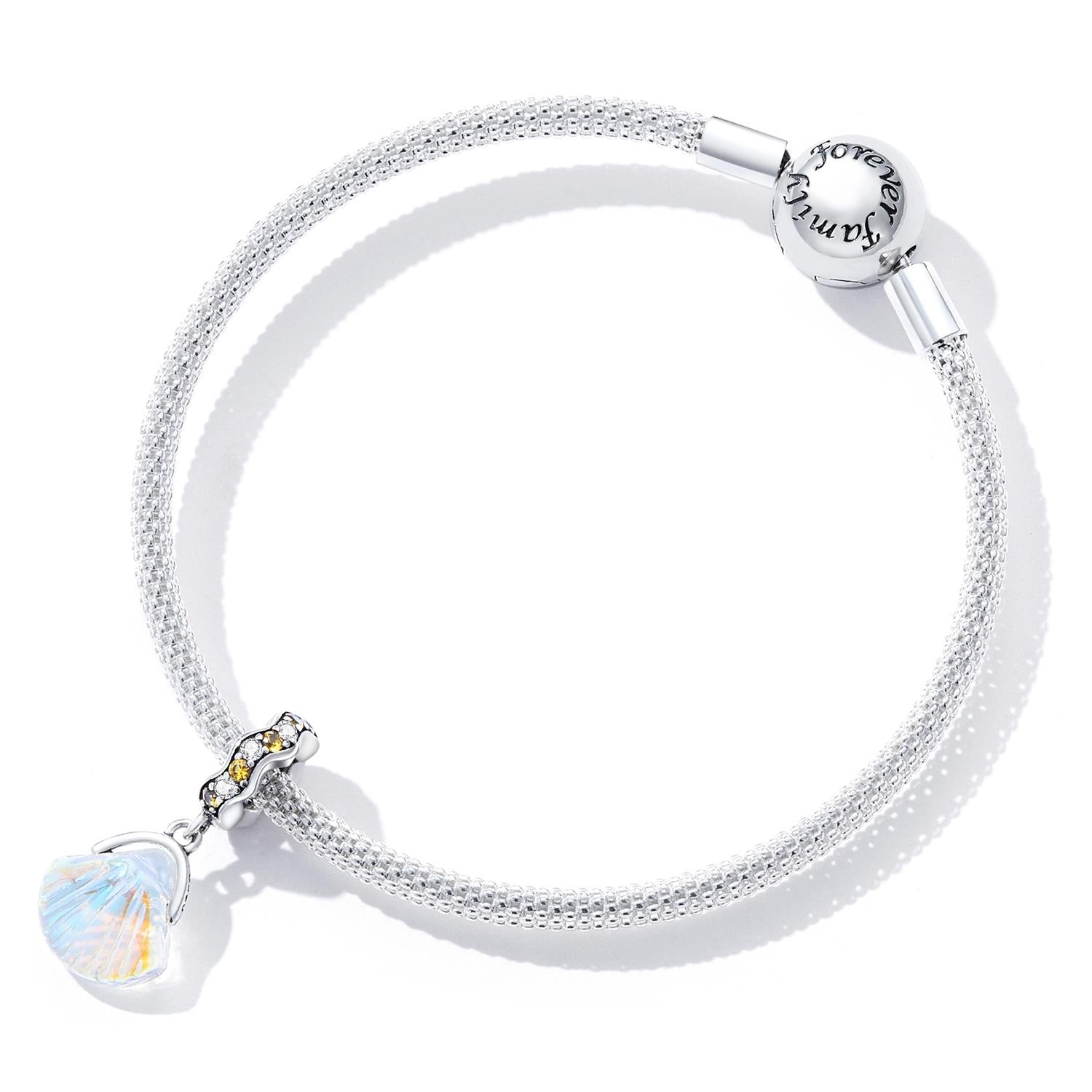 • 1 x 925 Sterling Silver Iridescent Shell Pendant For Diy Bracelet Or Necklace