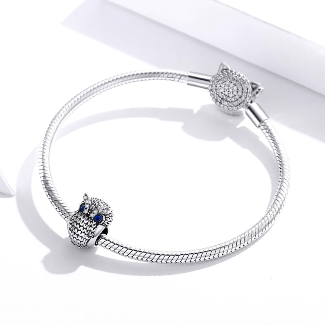 • 1 x 925 Sterling Silver Owl Beads For Diy Bracelets Necklaces