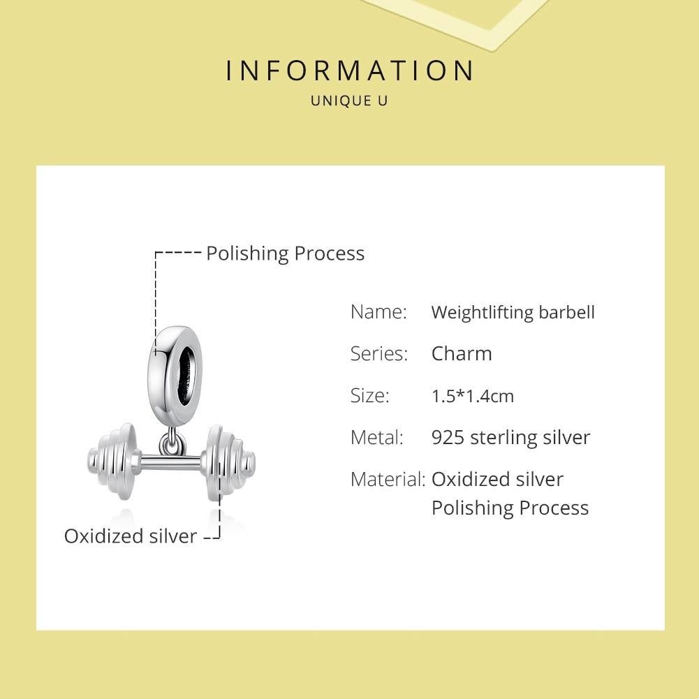 • 1 x 925 Sterling Silver Weightlifting Barbell Pendant For Bracelets / Necklaces
