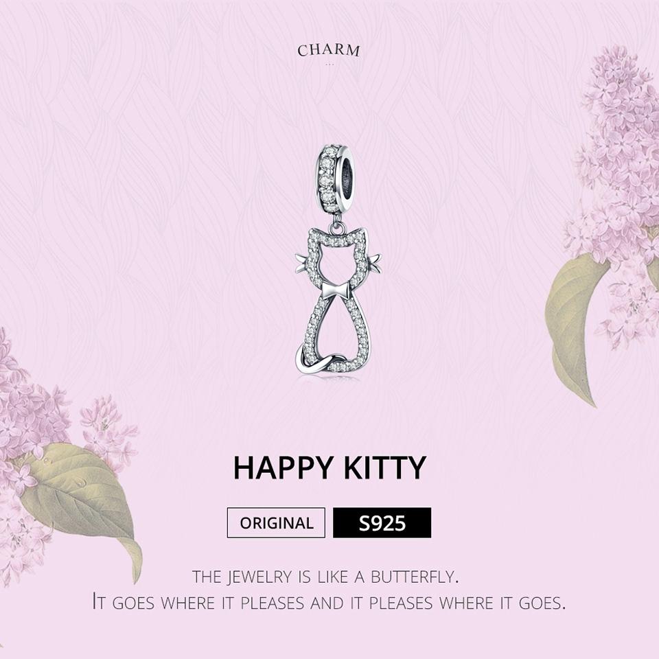 • 1 x 925 Sterling Silver Zircon Cat Pendant For Bracelet Diy Accessory