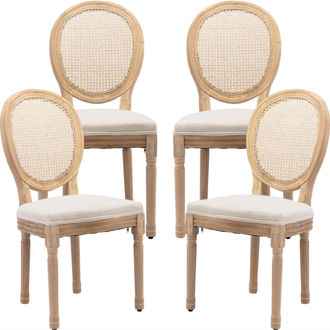 - Comfy Seating Experience & Easy to Assemble — Crafted entirely from natural rubberwood, the legs of these cane-back dining chairs ensure durability. The seats are padded with foam and covered in soft linen beige fabric, perfectly complementing the round backrest. This fashion-forward design offers optimal comfort and is easy to assemble, taking only a short time when following the instructions.