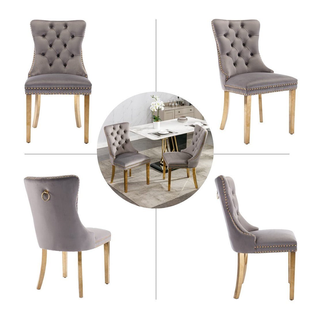 The chair's unique metal legs with gold finish, studs trim, and back pull-out ring make it a retro masterpiece, adding an extra touch of beauty to your home. These metal legs provide strong support with a weight capacity of up to 130 KGS. Small accessories at the bottom of the legs prevent sliding and scratching, ensuring the longevity of the chair.