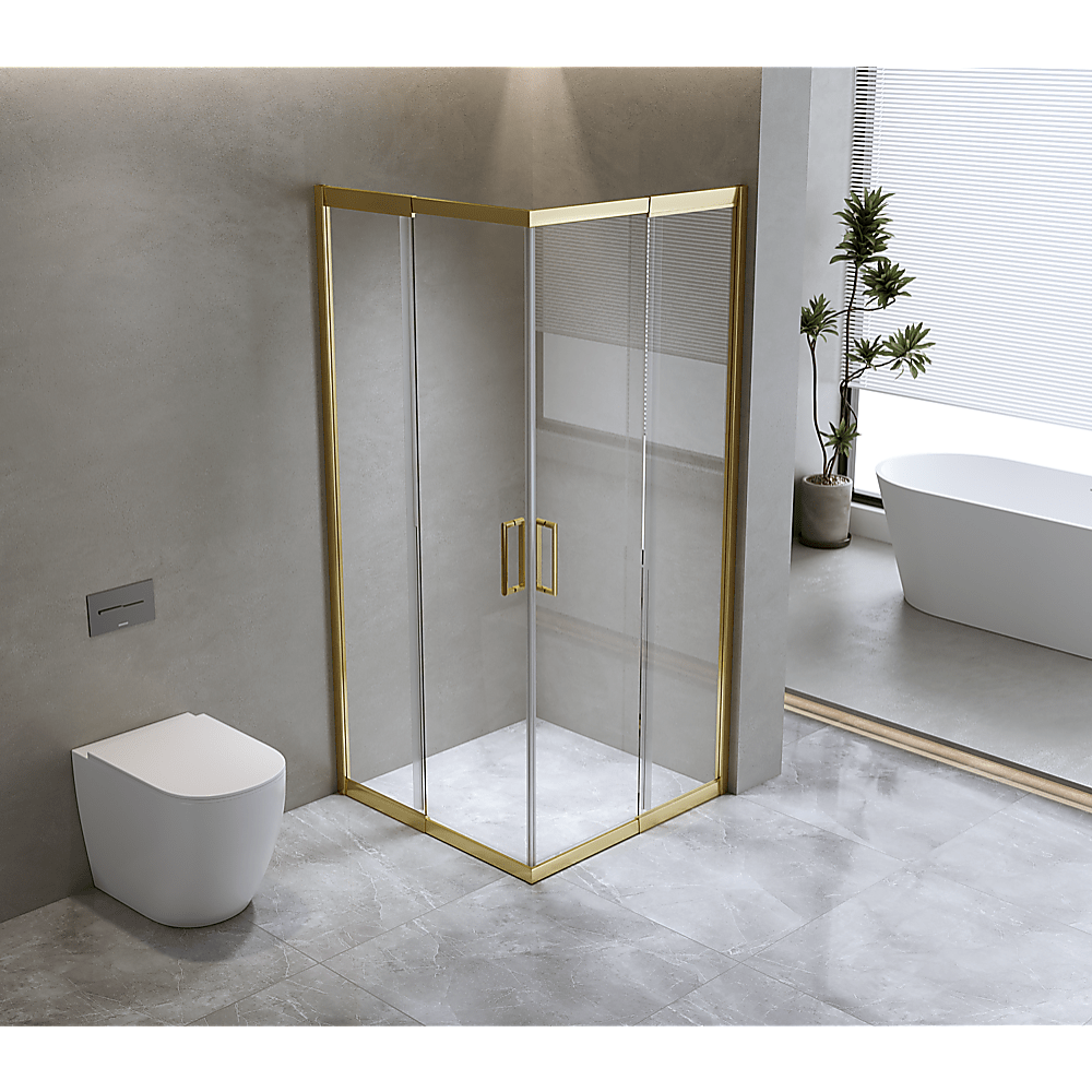 Experience effortless usability, facilitated by the state-of-the-art 16-wheel system that guarantees smooth and noiseless door operation. Additionally, maintaining its pristine condition is a breeze, thanks to the quick-release door feature. It comes with a waterproof assurance, showcasing magnetic seals and high-caliber gold hardware that's rust-resistant due to its stainless steel composition. The included side panel offers a versatile fit, accommodating both right and left-hand installations with a 100mm wall adjustment capability.