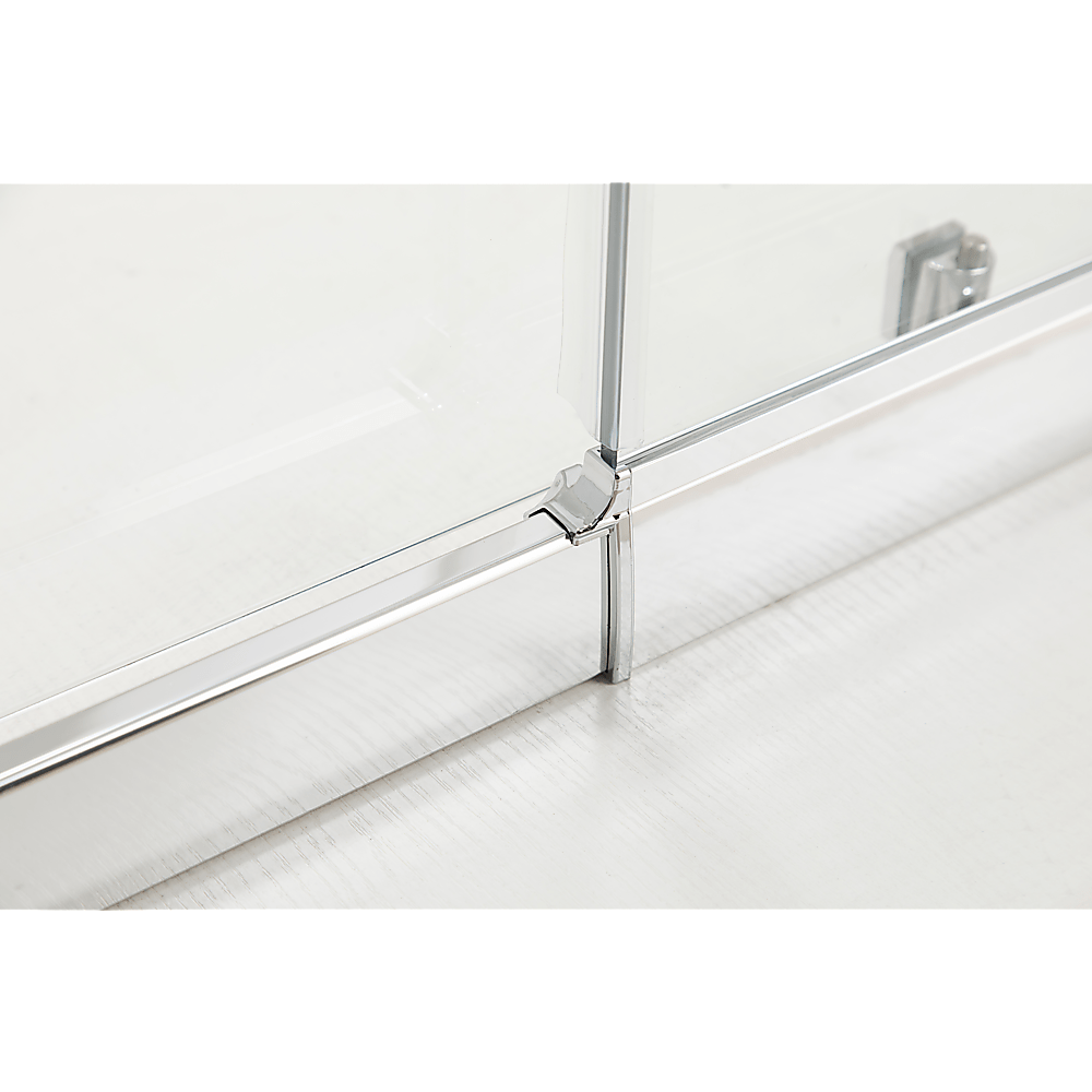 This refined sliding double-door enclosure not only captivates with its beauty but is also engineered for enduring quality. Backed by a waterproof guarantee, it features magnetic seals and high-grade chrome hardware, ensuring resilience against rust due to its stainless steel components. The accompanying side panel offers a universal fit, allowing for versatile right or left-hand installation with a 100mm wall adjustment.