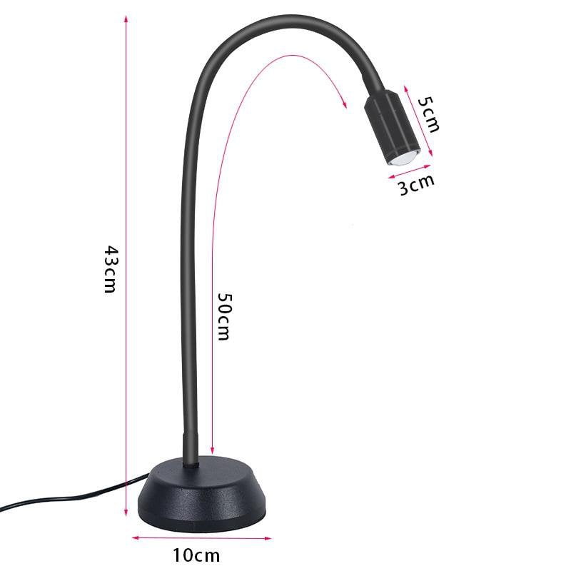 • Metal universal hose (50cm) for adjustable illumination angle and distance