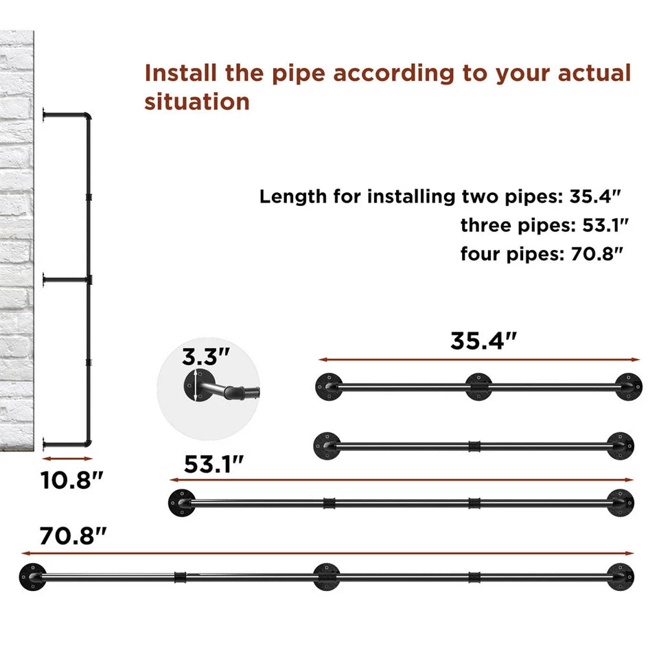 Made from strong black iron pipe, the rack is rust-resistant, durable, and supports up to 30 kg. It includes S-shaped hooks for bags and accessories. The detachable design allows adjustable lengths to fit different wall spaces. Easy to install with all hardware included.