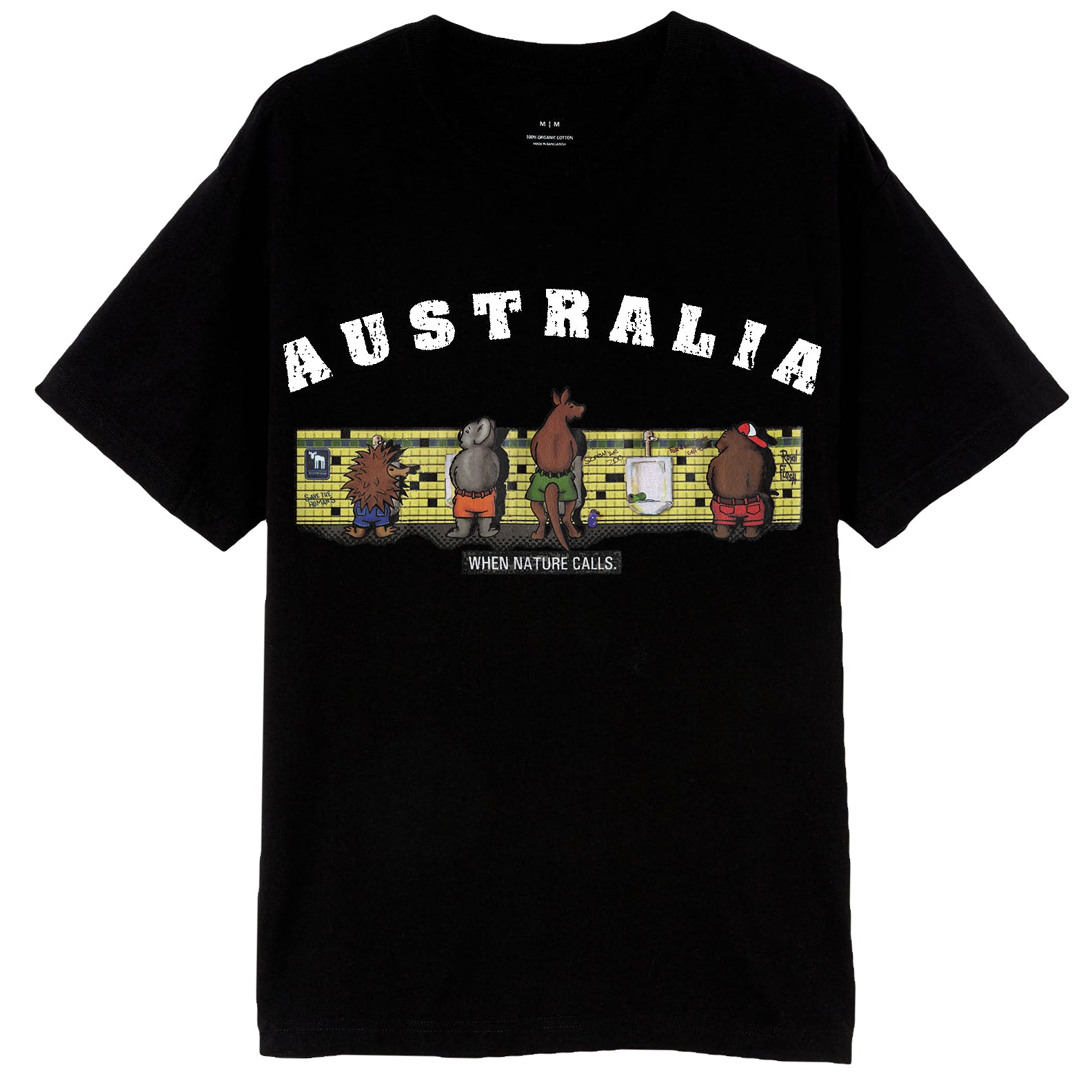 Adult 100% Cotton T Shirt Australia When Nature Calls Souvenir Tee Fun Tops Gift, Black, 2XL
