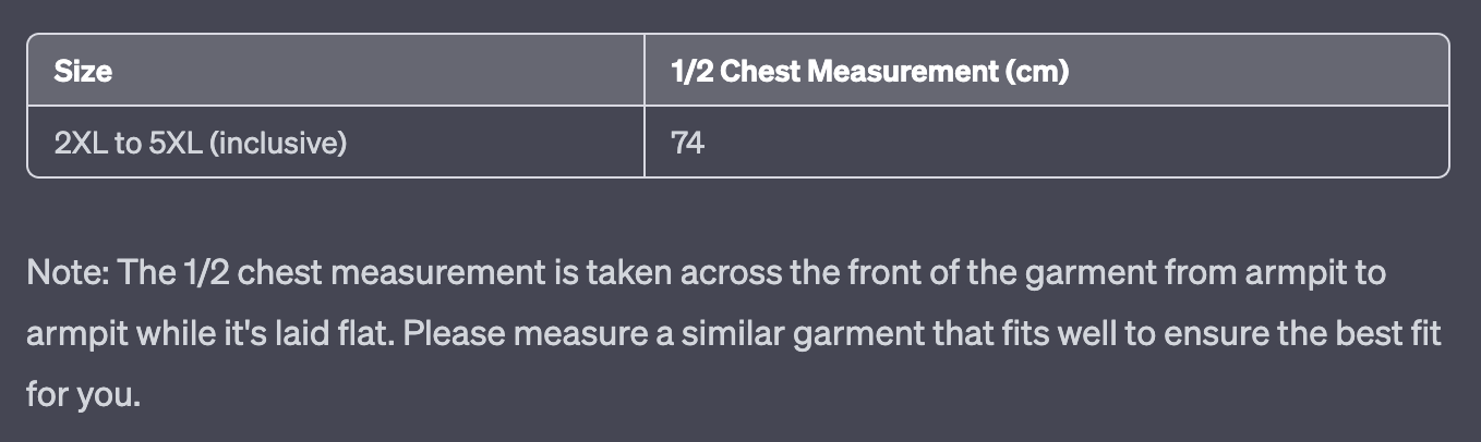 Garment ½ Chest (cm) Masurement: 74