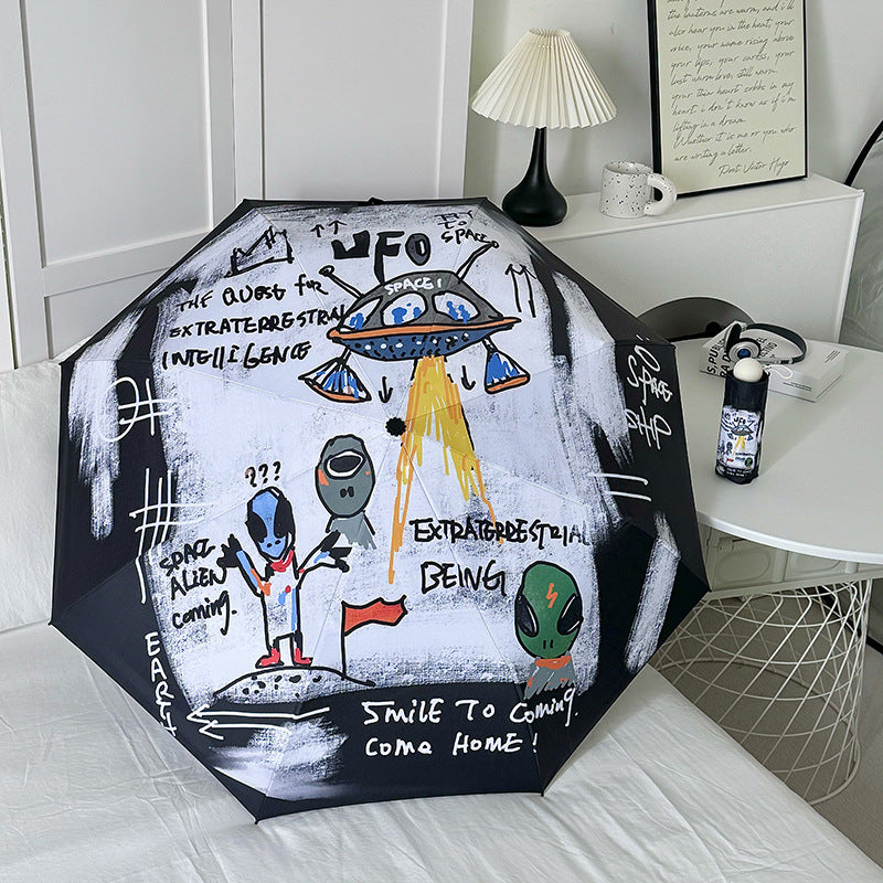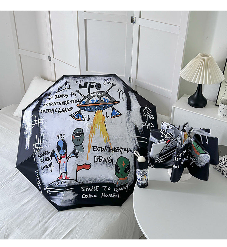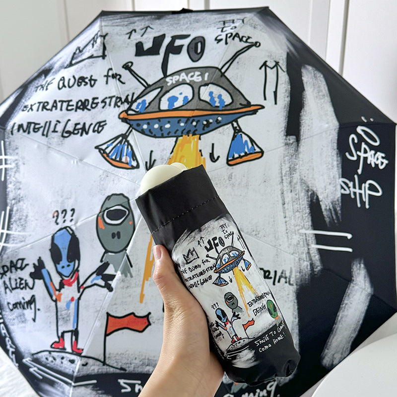 Alien Flower Mini 5-Fold Umbrella - Portable, Anti-UV, Black Glue Coating