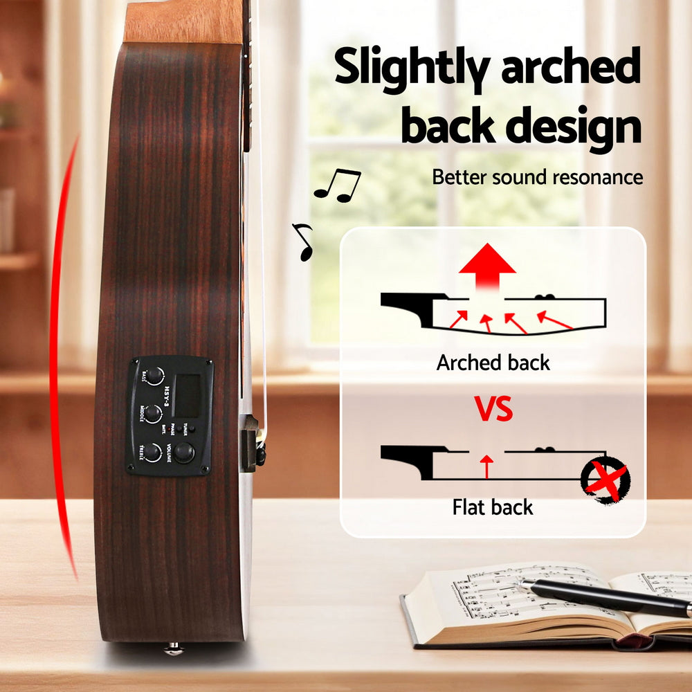 Unleash your sound with the Alpha 30 inch ukulele, featuring a stunning Ebony top and a responsive Okoume neck. This ukulele with EQ allows you to fine-tune your tone with bass, middle, and treble controls. Enjoy extended playability with 18 frets and durable 4 nylon strings. The unique arched back design enhances resonance, delivering a rich, full sound. Perfect for all skill levels, this Alpha ukulele comes with a handy accessory pack to get you playing straight away.