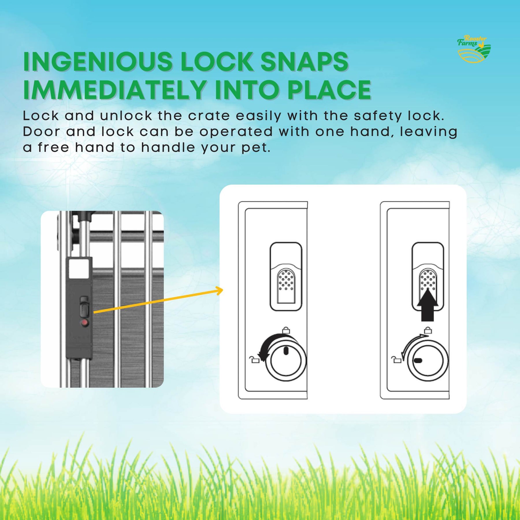 - Door and lock can be operated with one hand, leaving a free hand to handle your pet.