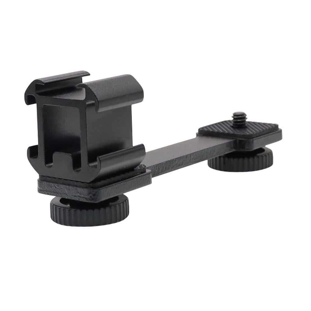 • Three hot shoe bracket for universal use with handheld stabilizers, tripods, and other equipment