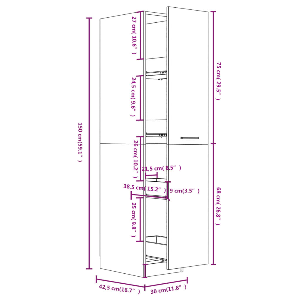 - Dimensions: 30 x 42.5 x 150 cm (L x W x H)
