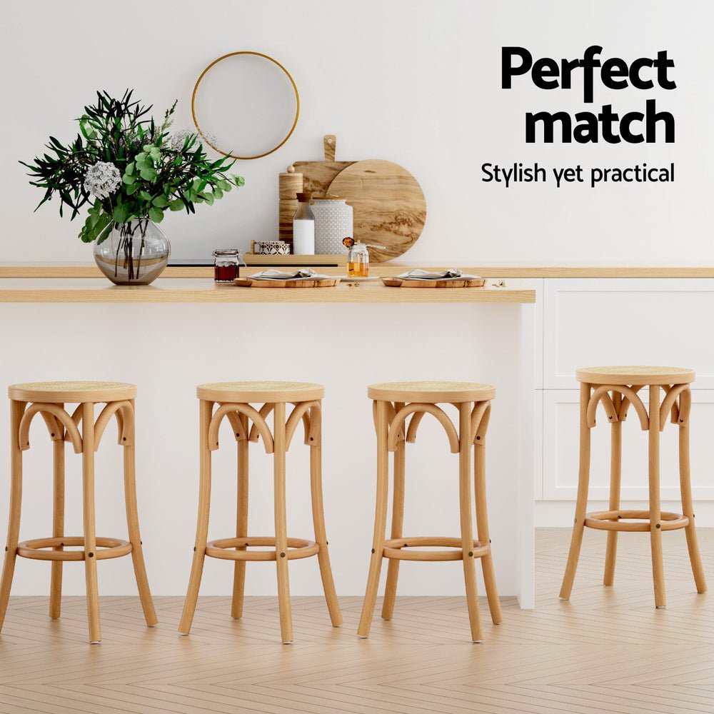 With its warm tones and timeless style, the Artiss Apri Bar Stool makes a charming addition to any home, restaurant or bar. Made from a solid beechwood frame with a stylish rattan seat, this classic design will bring warmth and depth to your home décor. The real rattan seat is well-ventilated, easy to clean and has a natural, organic feel that will support your guests throughout the evening. The frame features a smooth finish and safe rounded edges that are pleasant to the touch. With a 150kg weight capacity, a sturdy footrest and anti-slip feet, the stools will stay firmly in place throughout the evening even with robust use. Easy to assemble and even easier to maintain, you and your guests will love the inspired Artiss Apri Bar Stools.