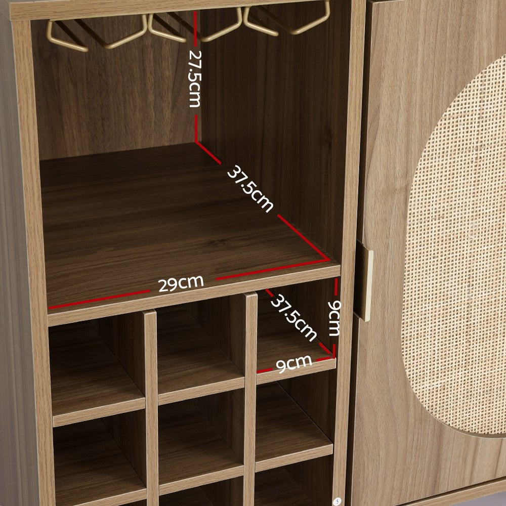 Looking to achieve a coastal bohemian look and feel in a functional furniture piece? Look no further than the Artiss Anya Buffet Sideboard. Featuring classic woven rattan doors on an MDF particleboard frame, the sideboard is built for long-lasting function. The smooth surface keeps the piece easy to clean and maintain – simply wipe away spills with a damp cloth. Perfect for storing your spirits and wines, the piece comes with a 9-cube wine rack and stemware racks for standard wine glasses. The sleek metal handle allows you to open the magnetic doors and access the generous cupboard with ease. Metal legs with anti-slip foot pads keep the sideboard standing in place and protect your floors. Keep your glassware and other essentials neat and organized with the stylish and functional Anya Buffet Sideboard from Artiss.