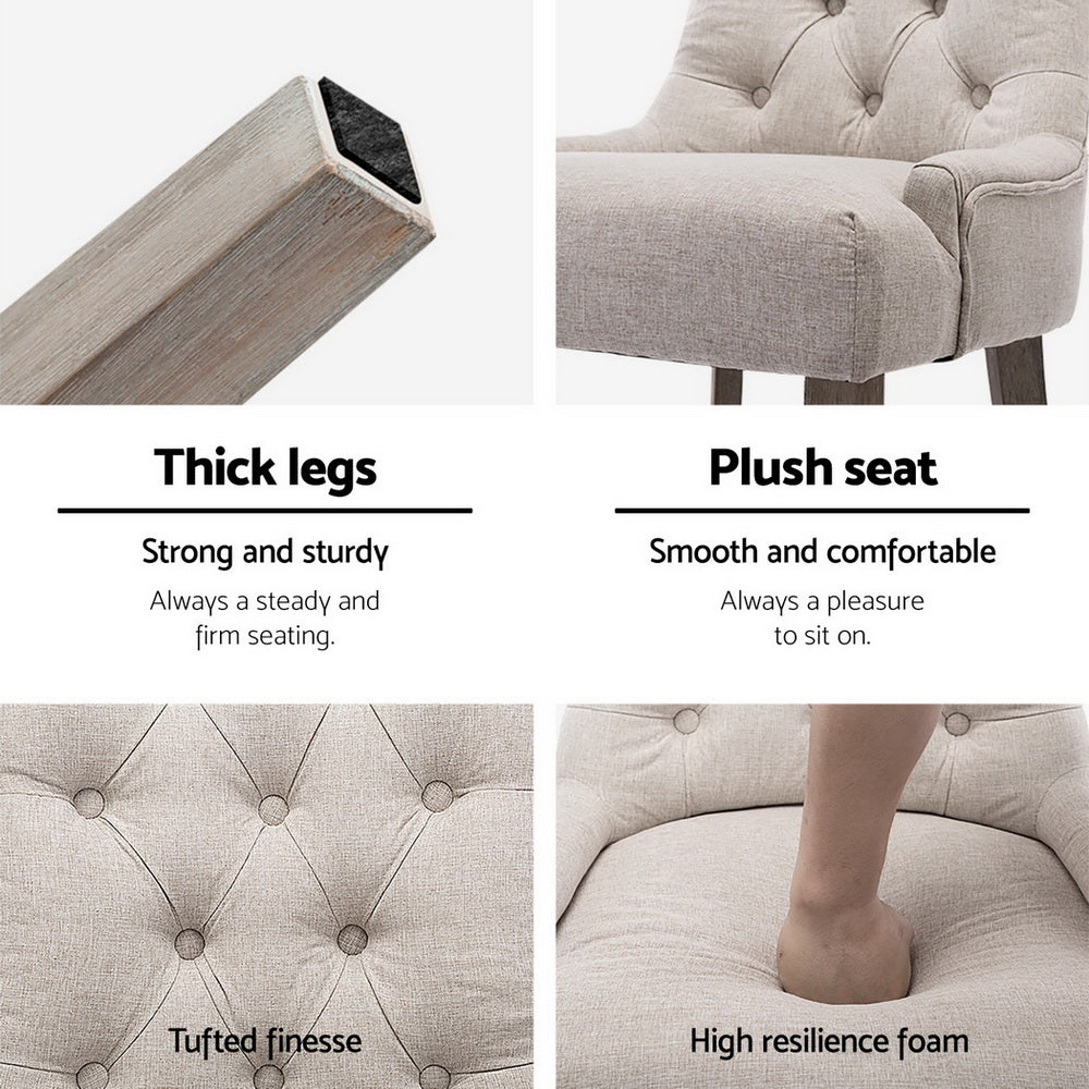 Transform your home with French Provincial charm with our timeless Cayes Dining Chair. Oozing myriads of class and sophistication, the Cayes Dining Chair is upholstered in quality amber taupe linen over deep 13cm high resilience foam and set over a rubber wood frame.