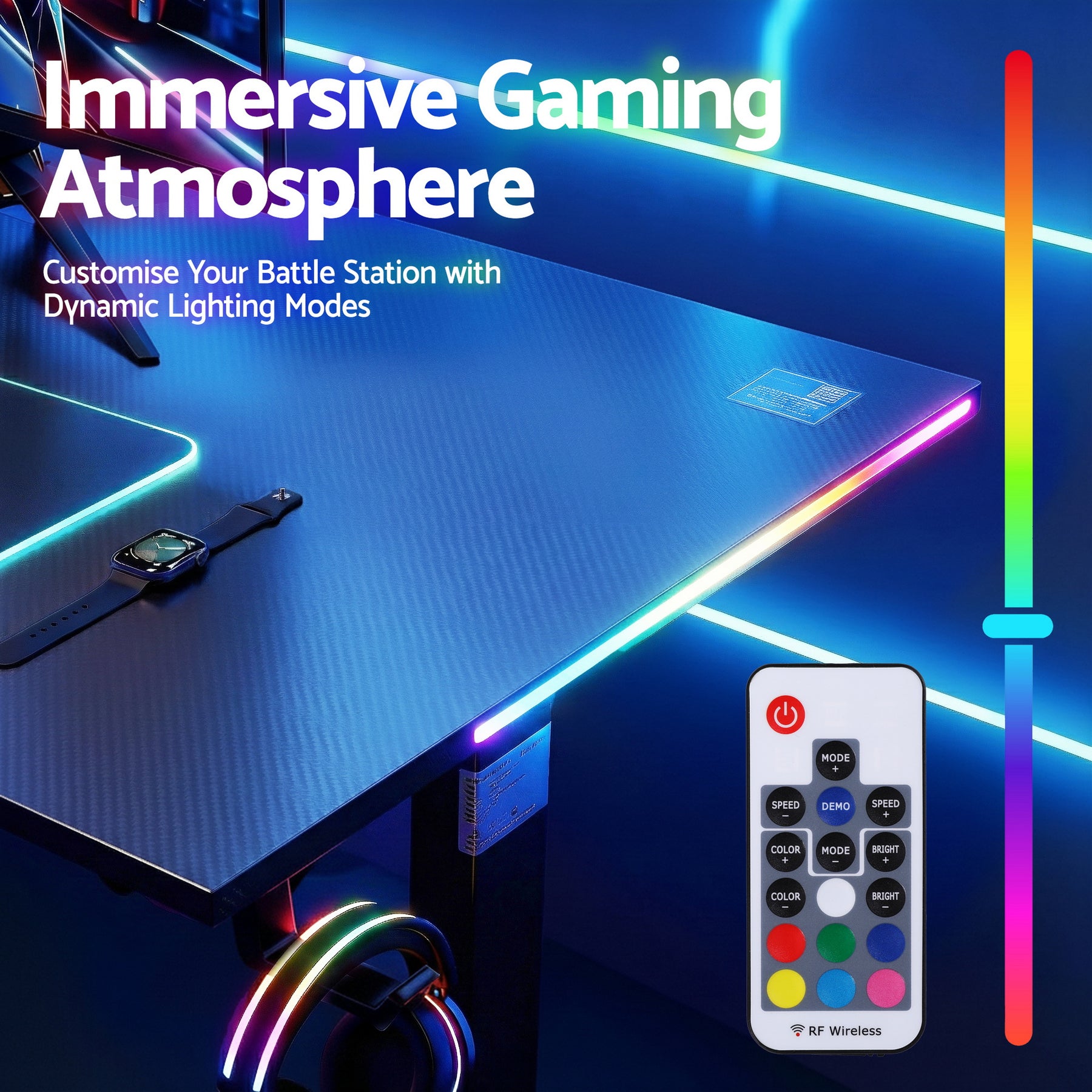 Designed for modern gamers, this Artiss gaming standing desk features electric height adjustment with memory control, RGB LED lighting, and a durable MDF desktop. Switch easily between sitting and standing while keeping cables organised for a clean gaming setup.
