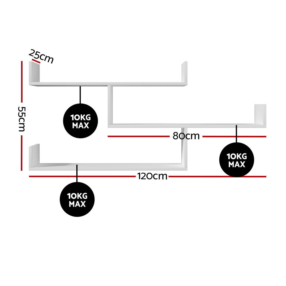 Transform blank walls into functional art with the Artiss Floating Wall Shelf, where minimalist design meets practical storage. It can function as bathroom shelves for adding over-the-toilet-storage space to accommodate bathroom accessories, or as floating nightstands in the bedroom, or as spice racks to expand kitchen storage, or as display shelves in the living room. The U-shaped shelves not only can prevent items from dropping over, but also enhance your home decor and imparting a feeling of sophistication and elegance to any room.