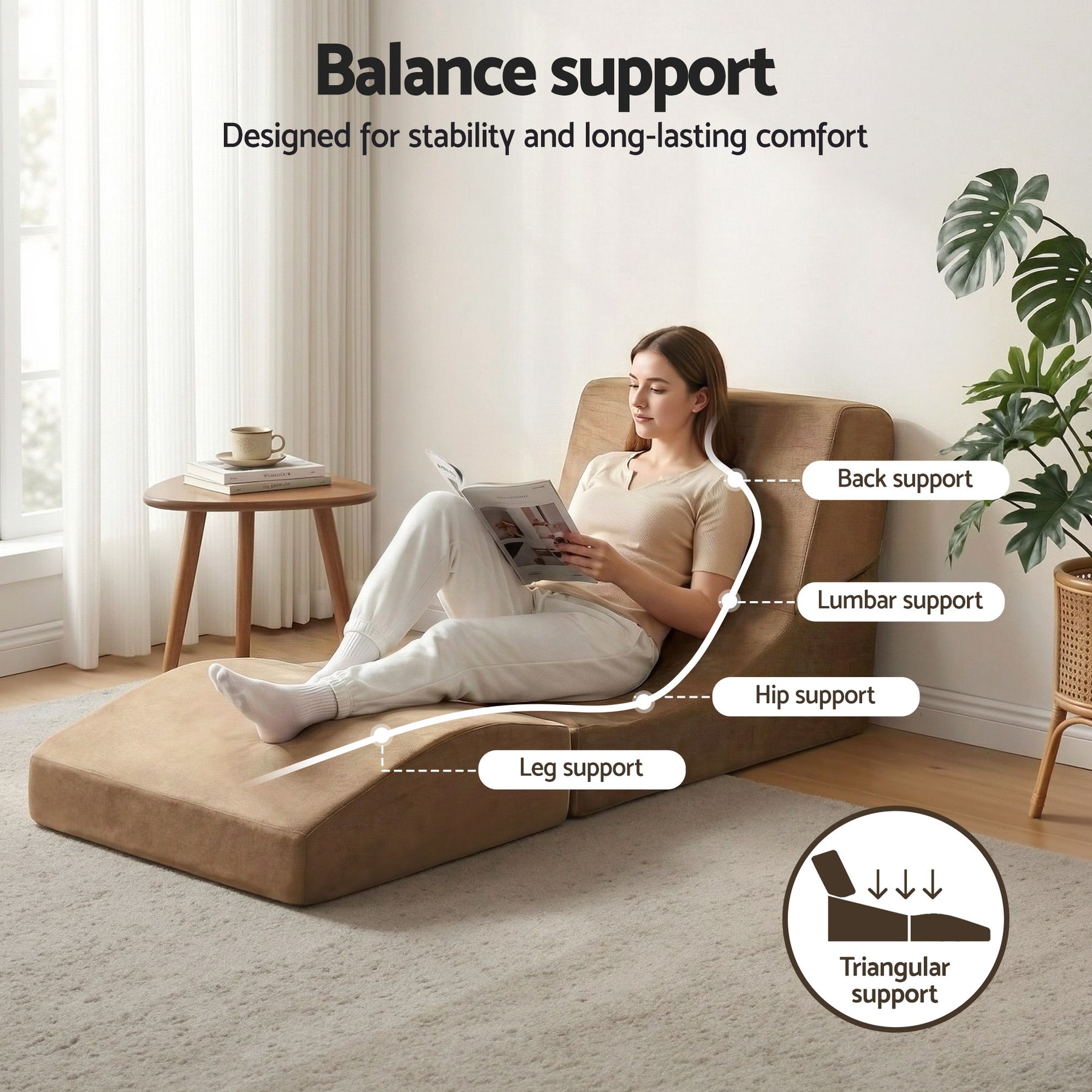 Upgrade your home's versatility with the Artiss 3-in-1 Folding Sofa Bed, a stylish and functional piece designed to adapt to your lifestyle. Whether you need an extra chair for gaming, a lounger for reading, or a temporary bed for overnight guests, this multi-functional piece delivers. It is upholstered in premium soft velvet fabric that feels wonderful against the skin, while the interior is filled with high-density foam. This medium firmness comfort layer ensures you stay supported without sinking too deep, making it ideal for both sitting and sleeping. The innovative triangular support structure offers excellent stability, while the tailor-made non-slip base keeps the unit secure on any floor surface. Despite its soft feel, it is impressively durable with a 150kg strong load capacity. Maintenance is a breeze thanks to the zipped washable cover design, allowing you to keep the velvet pristine with ease. Compact, modern, and incredibly comfortable, this Artiss folding sofa bed is a versatile addition to any room in the house