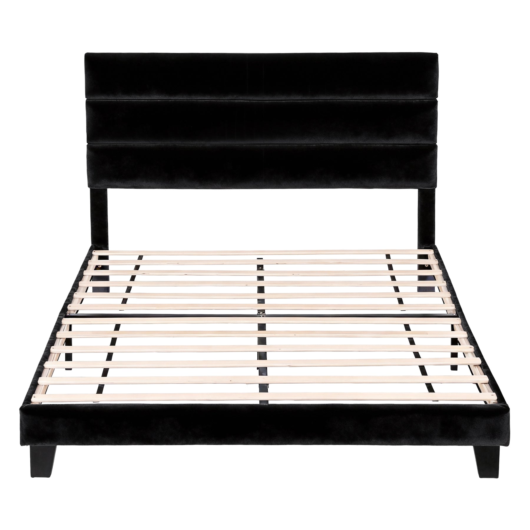 Elevate your bedroom with the Artiss Queen Bed Frame. Featuring plush black velvet upholstery and a modern geometric headboard, this platform bed frame offers effortless assembly and robust support. Engineered with pine wood, metal legs, and 12 plywood slats, it holds 300kg securely. The skin-friendly velvet fabric is simple to maintain, while its versatile black design complements any decor. A durable, space-saving solution for contemporary homes