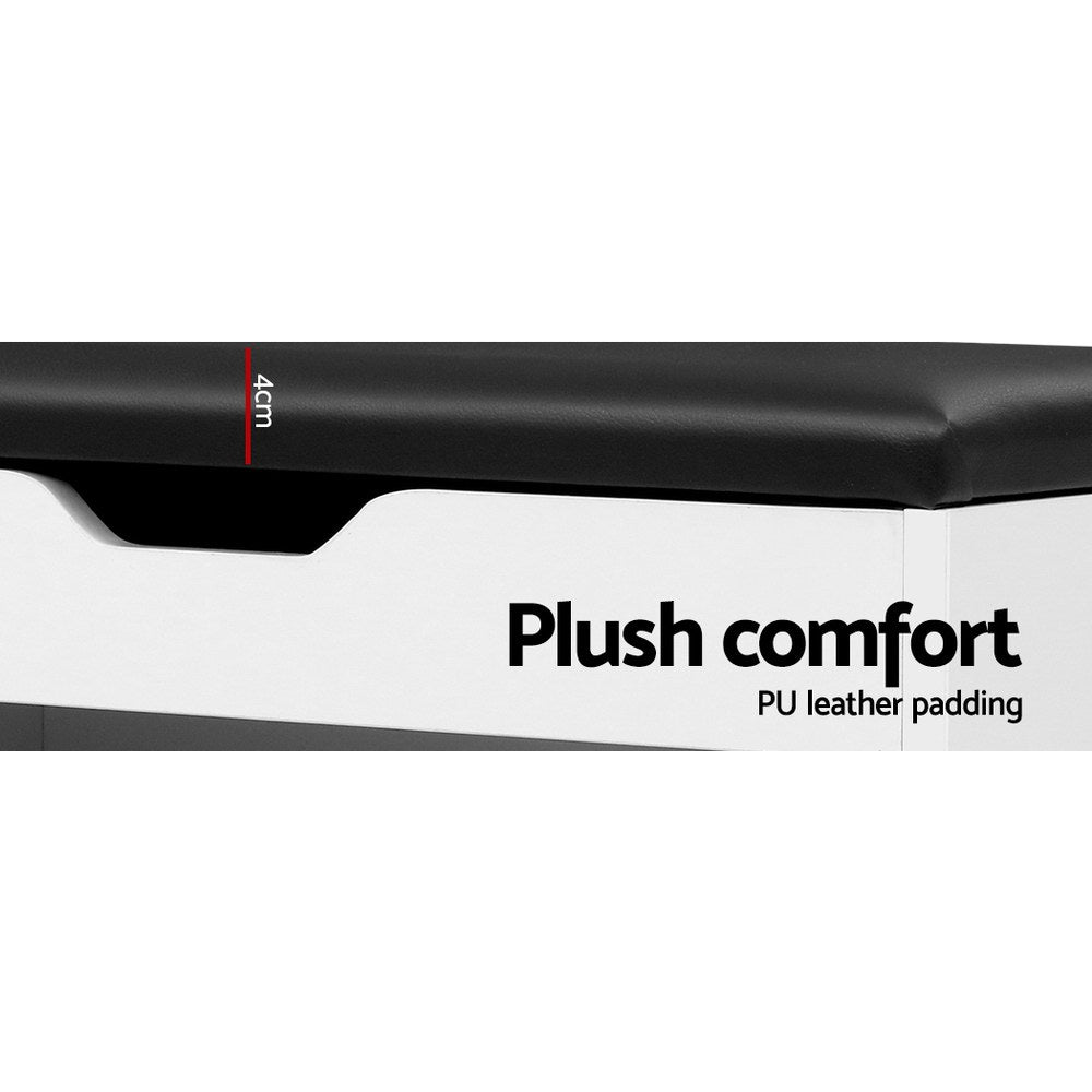 Get yourself a shoe cabinet with an aesthetic difference. Our Artiss Shoe Cabinet Bench adds a touch of luxury and multi-functionality to the ubiquitous shoe cabinet. On first impression, it looks just like a plush PU leather stool. Pull down the front panel and you find three tiers of adjustable shoe shelves with ample space for up to 15 pairs of various footwear. There is also a closed storage compartment hidden under the seat, with cut-out handles for easy opening. Made from quality particle board, the bench is sturdy and finished in melamine for durability and easy maintenance. Not least, its thoughtful design means that you can place it in your hallway or entrance for a neat and tidy look that blends seamlessly with your home decor. So remove the clutter and get organised with our shoe cabinet bench. We are sure it will fit right in with your discerning taste for all things stylish and chic.