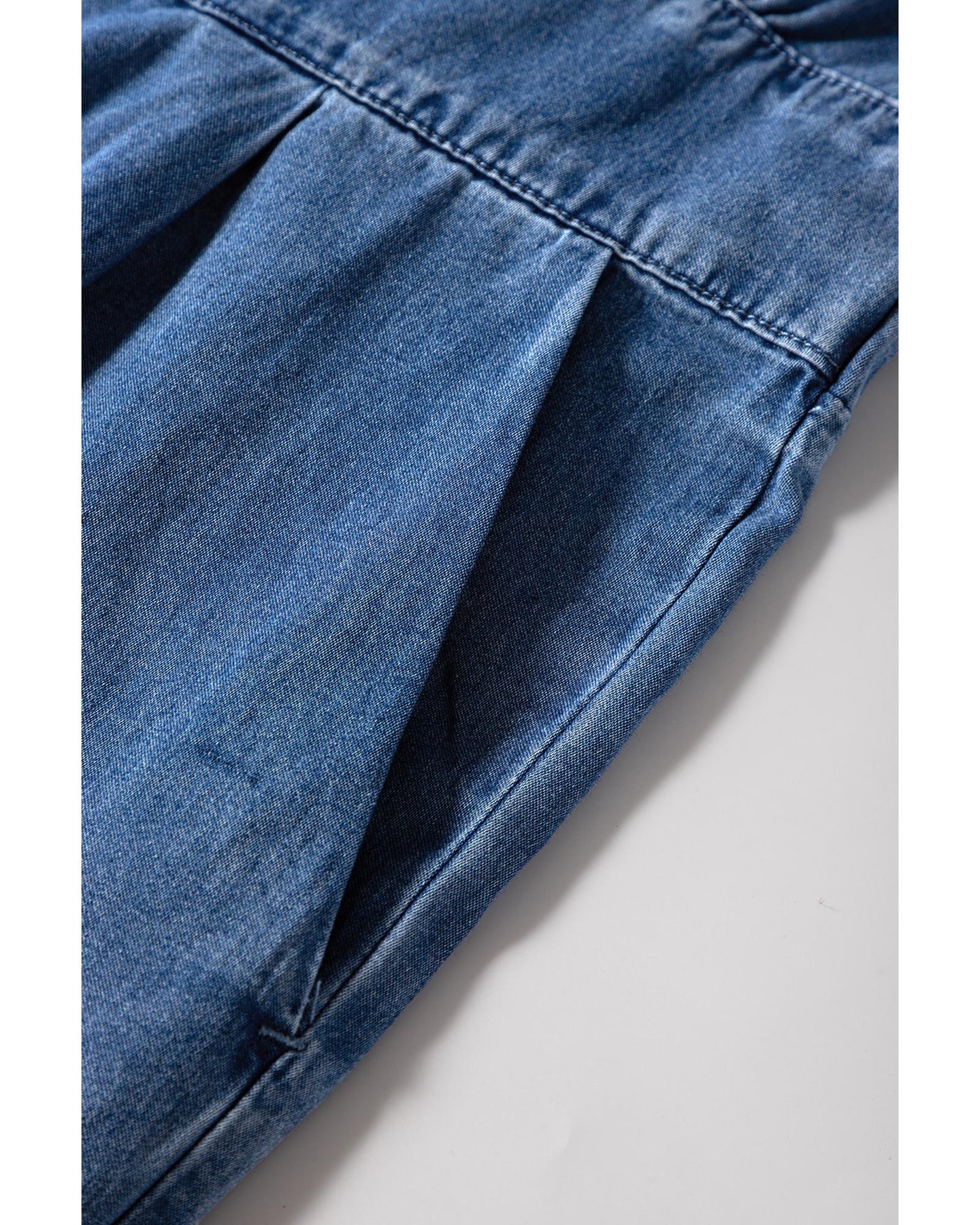 Ashleigh Blue V Neck Short Sleeve Smocked Back Denim Loose Jumpsuit - XL