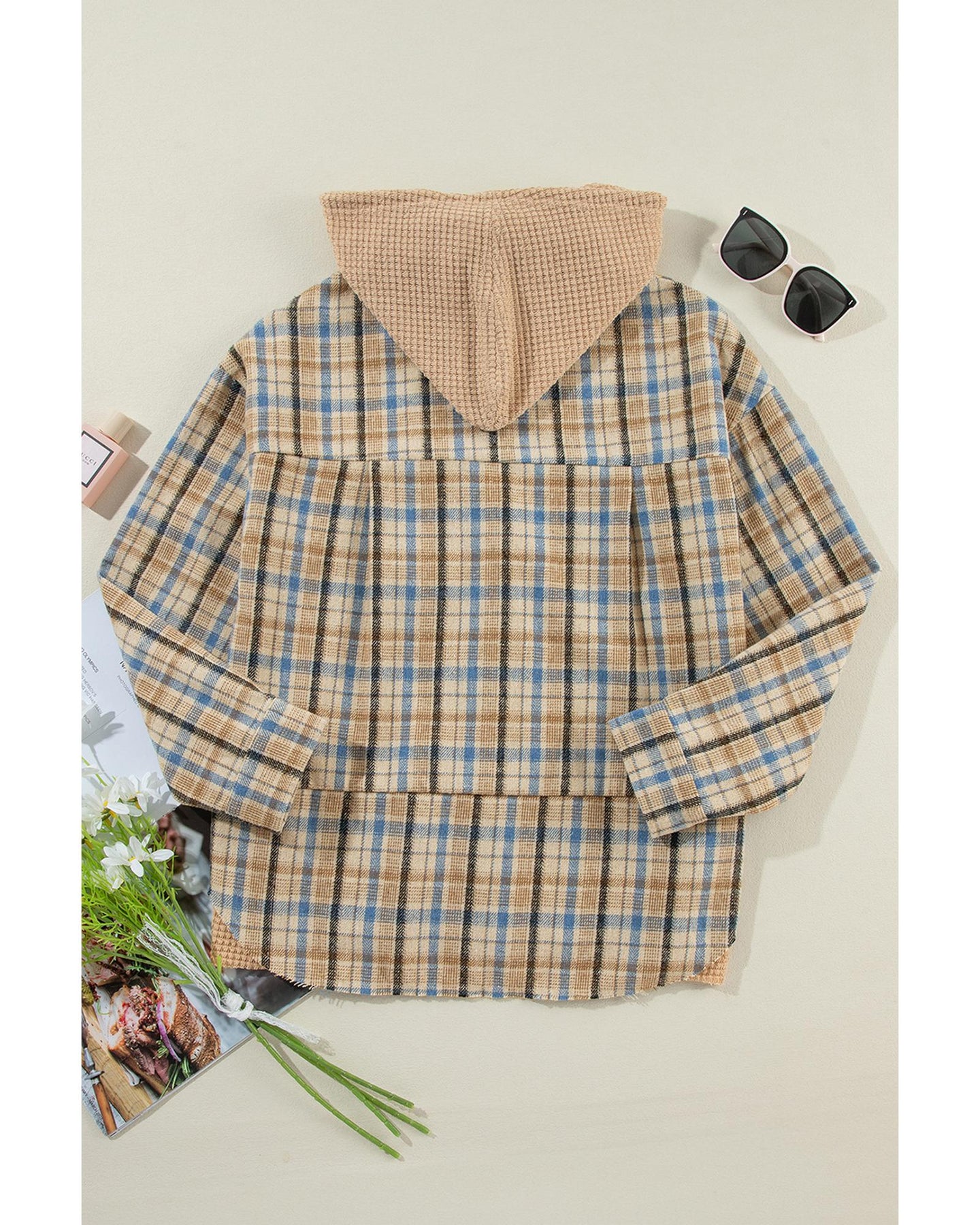 Ashleigh Blue Waffle Knit Patchwork Hooded Plaid Shacket - L