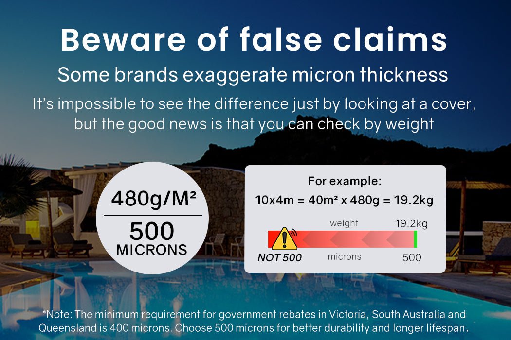 This blanket has good durability because of its ability to withstand UV damage, chemical penetration and tearing. While other brands may claim to have a thickness of 400 Microns, we strongly recommend that you check that the weight of their product matches ours. If it doesn't weigh as much, or if they don't advertise the product weight, then you should be wary of their claim.