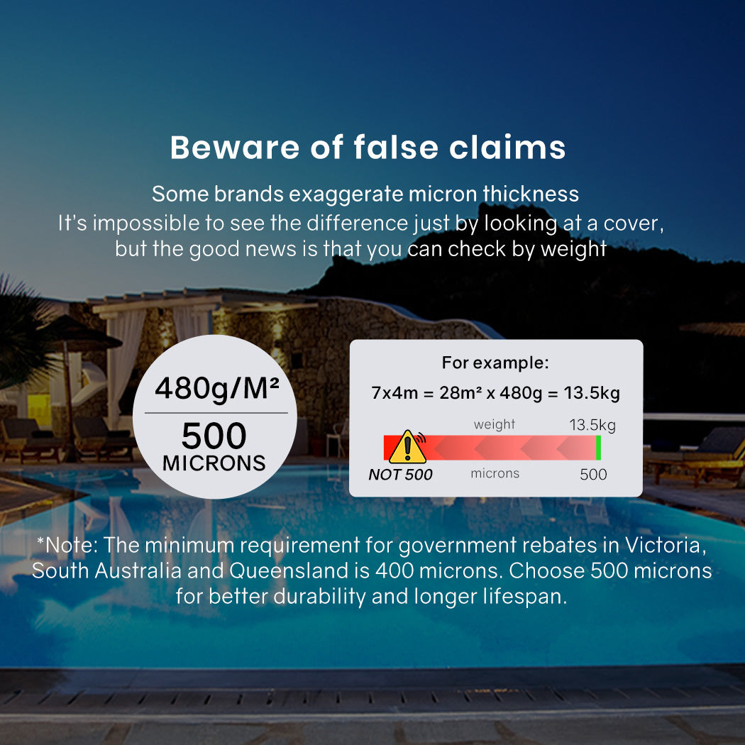 The genuine 500 Micron Bubble is a weight and thickness for pool owners who wish to regularly take the cover on and off with ease, while durable enough to withstand tearing, sun and chemical damage. Your pool will be exceptionally clean all year with the cover denying any debris access to the water.