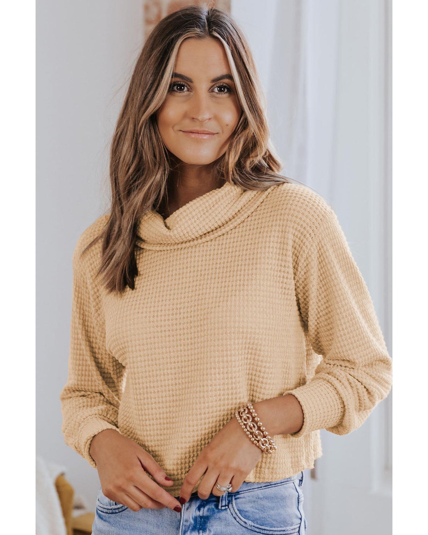 • Trending waffle knit pullover for the fall/winter season