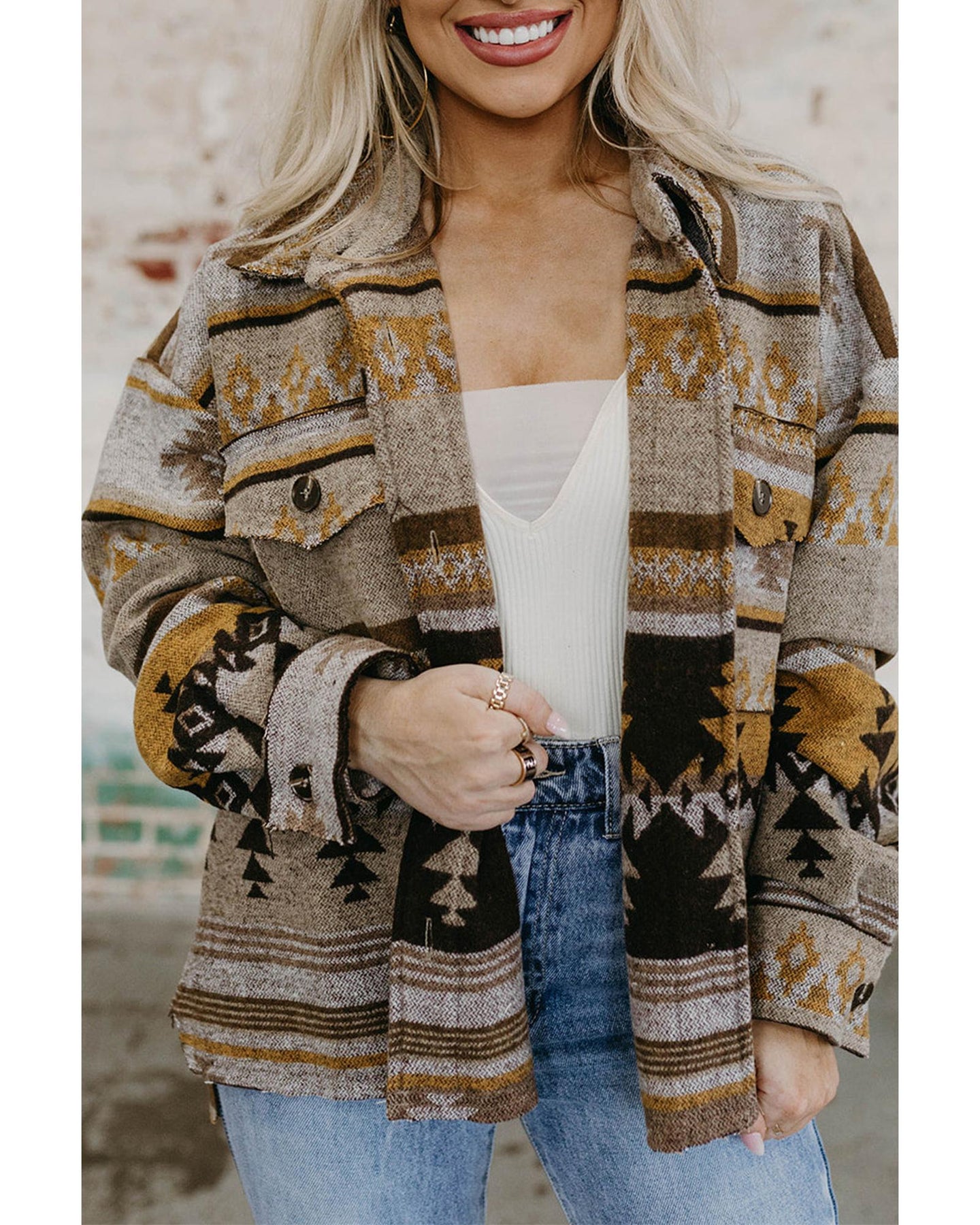 • Brown Western Aztec Print Jacket