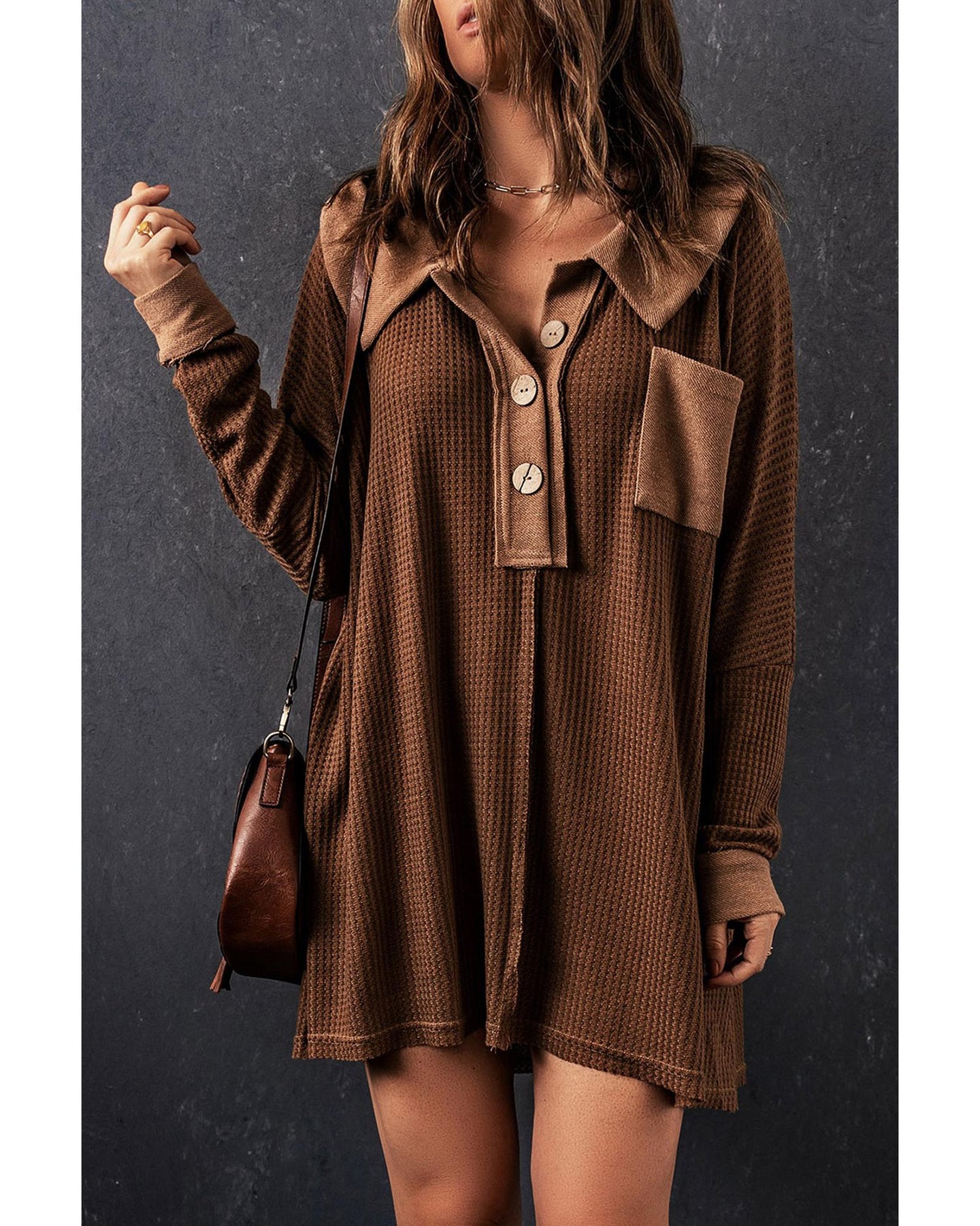 Azura Exchange Buttoned Waffle Knit Long Sleeve Top - M