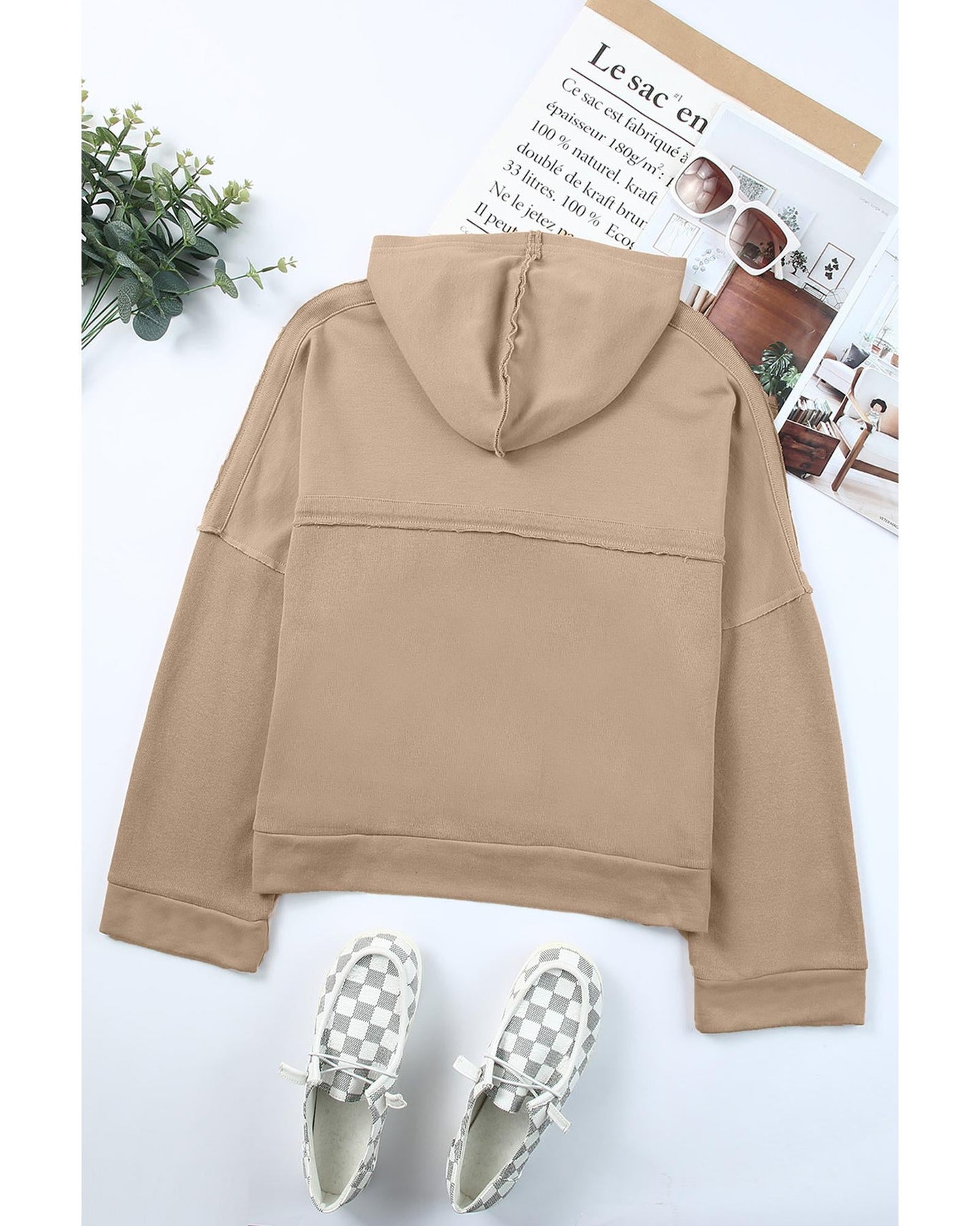 Azura Exchange Casual Khaki Hoodie with Patchwork Trim - L