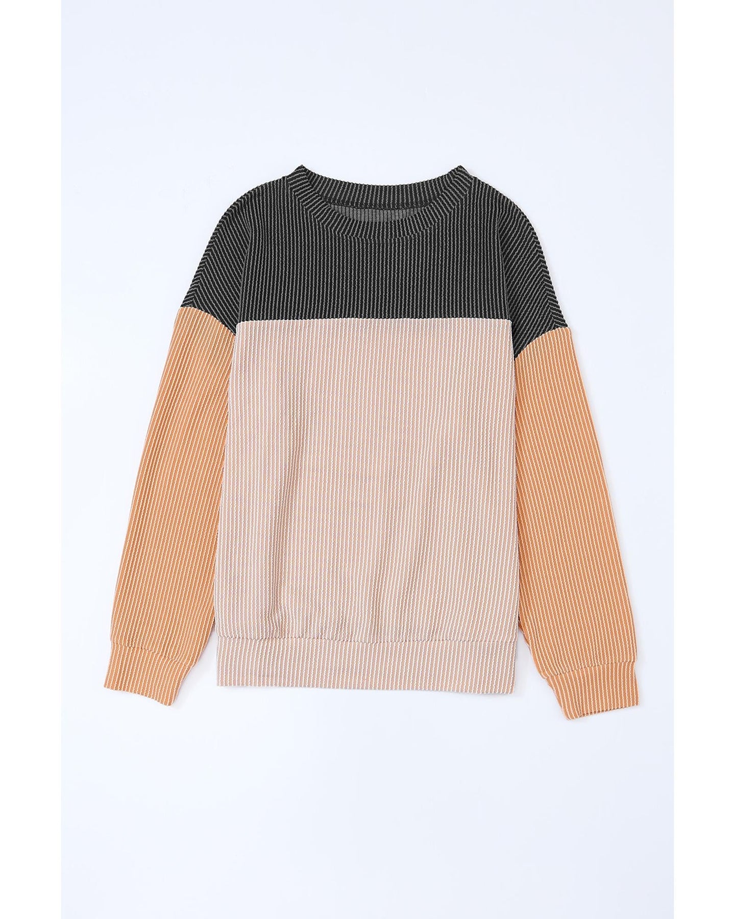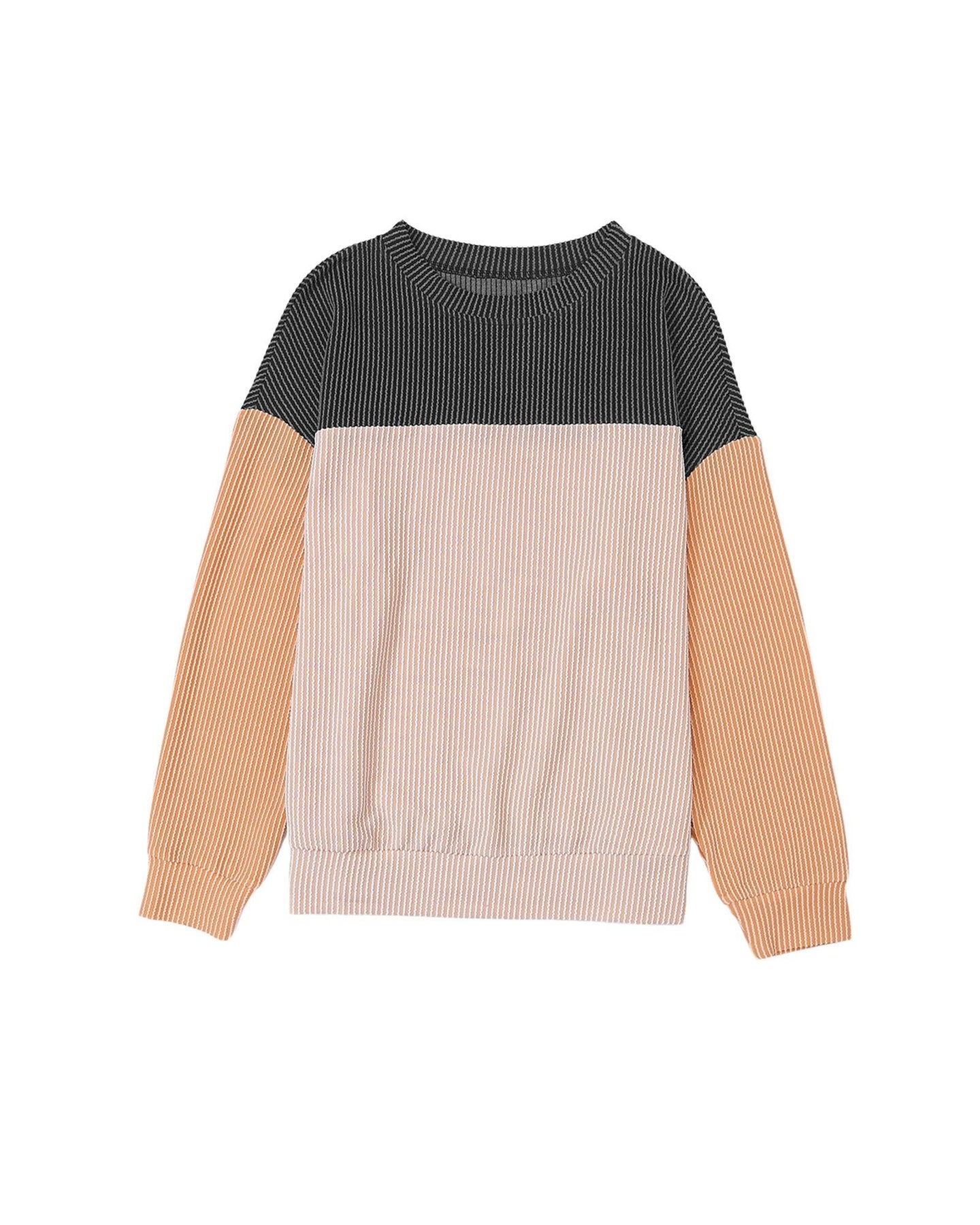 - Black Color Block Long Sleeve Ribbed Loose Top