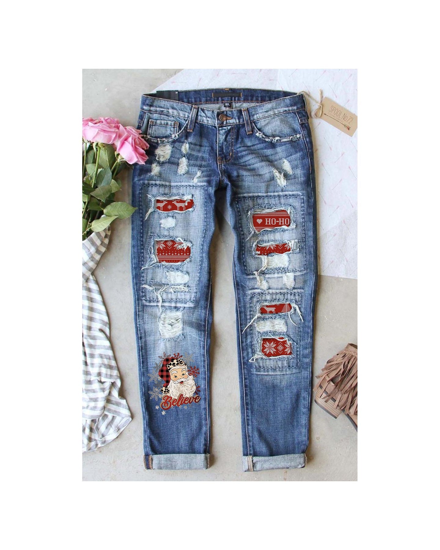 - Trendy and stylish Santa Claus Pattern Splicing Distressed Boyfriend Jeans