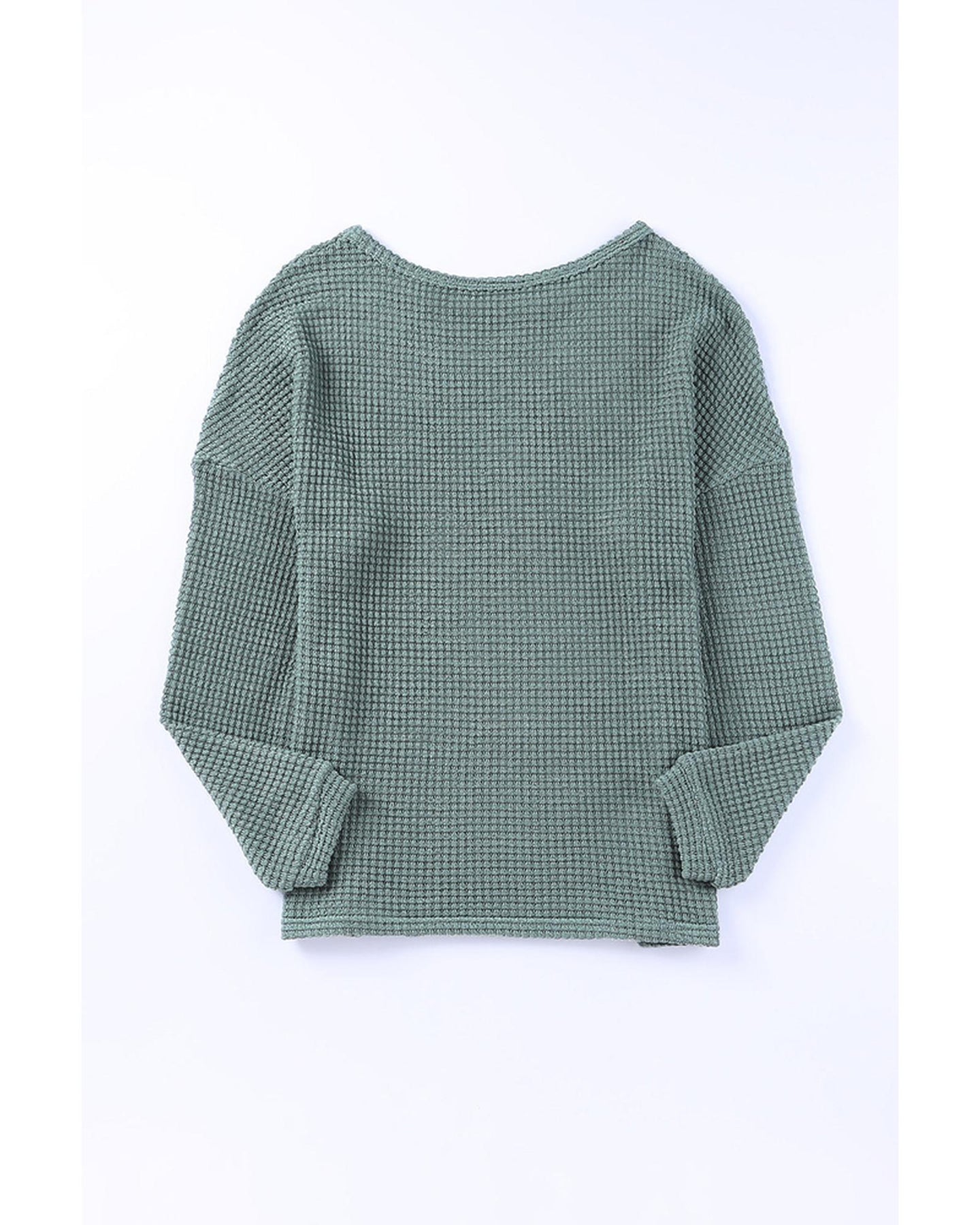 Azura Exchange Drop Shoulder Waffle Knit Long Sleeve Top - M