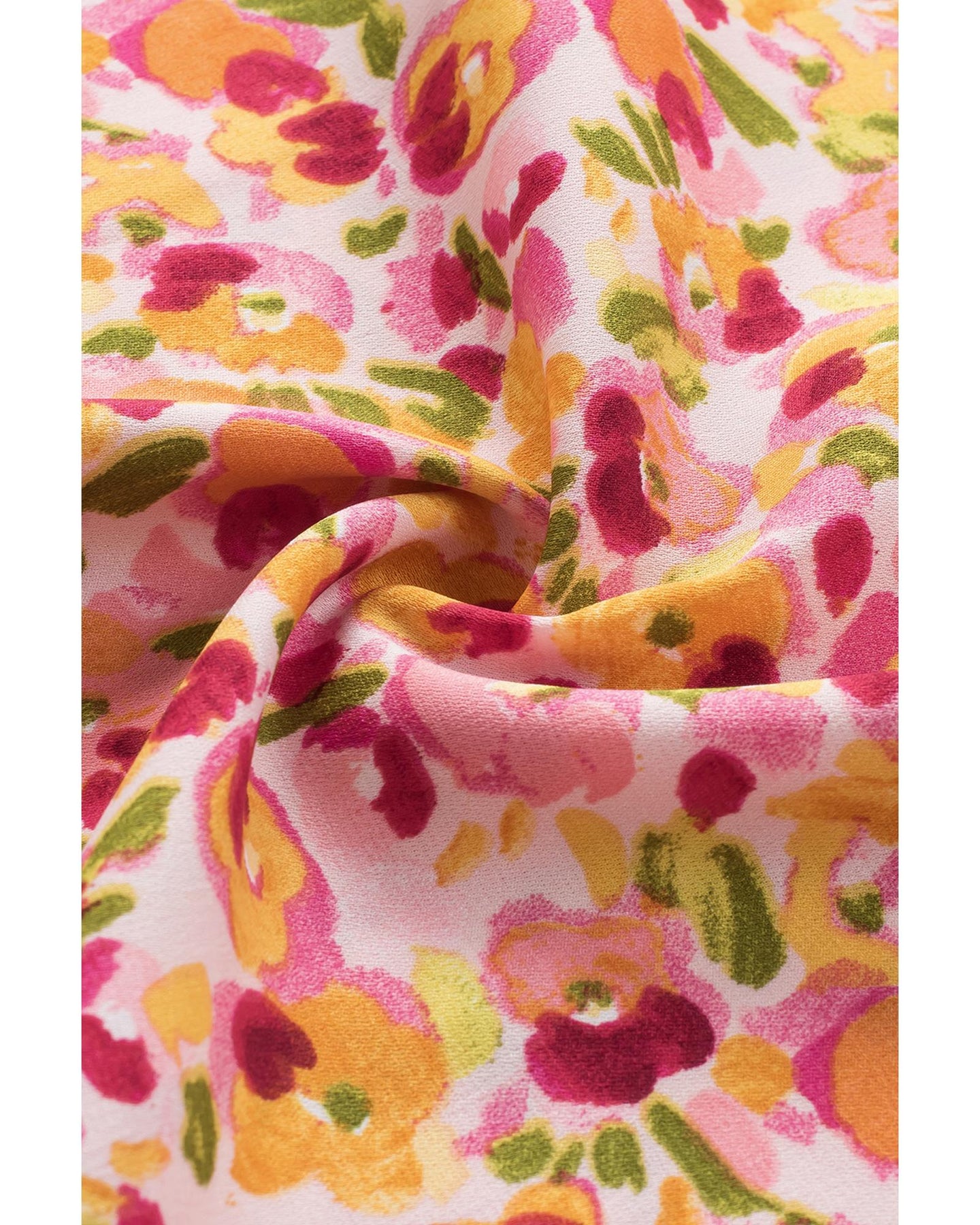 - Boho Floral Ruffle Short Sleeve Frill Mock Neck Blouse