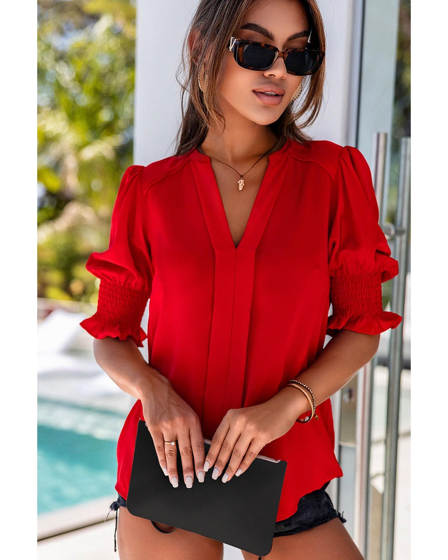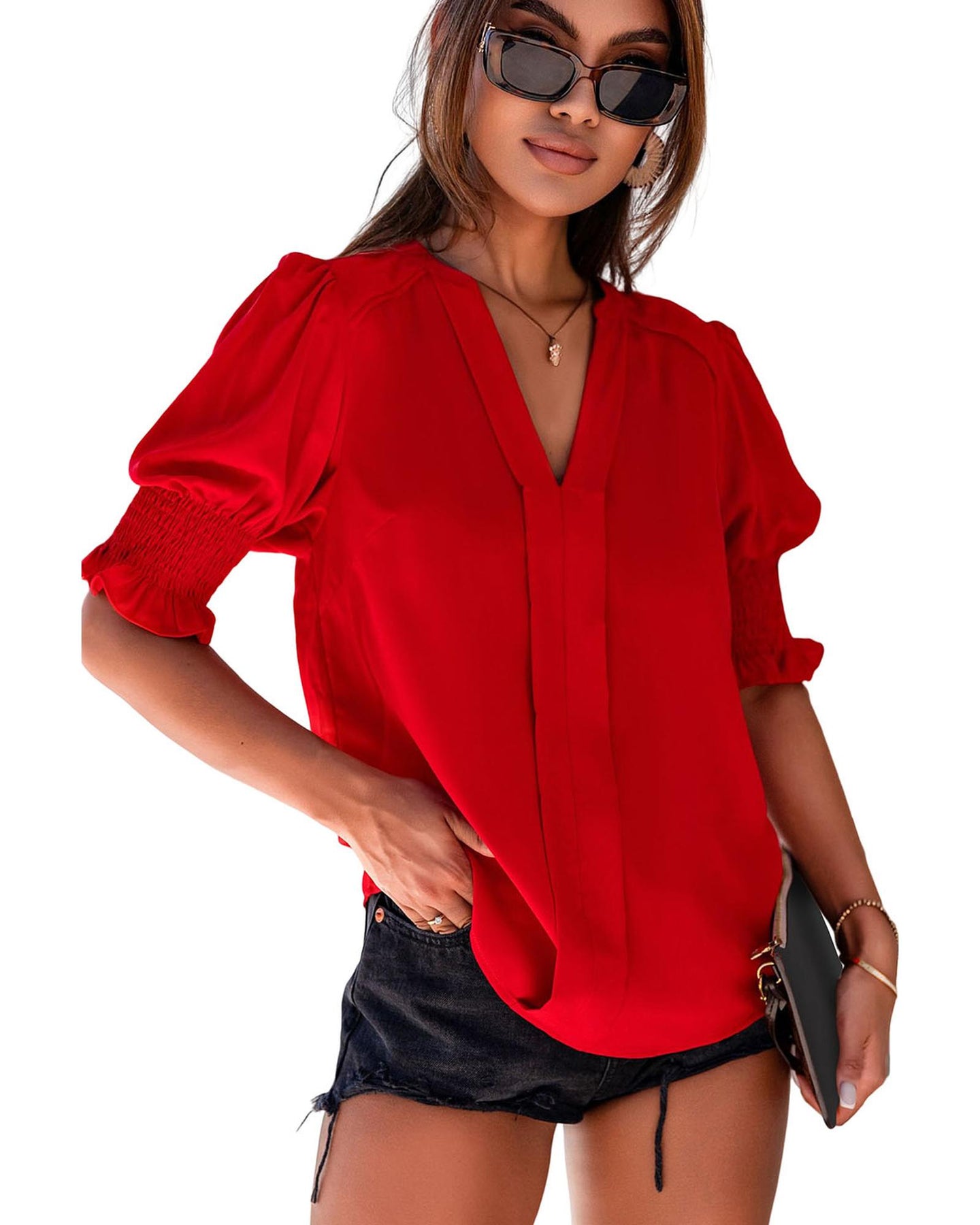 - Versatile and stylish Solid Color Half Sleeve V Neck Blouse