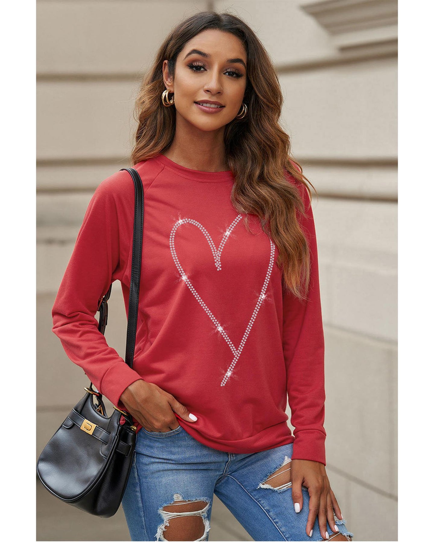 - Luxurious Rhinestone Heart Shaped Long Sleeve Sweatshirt