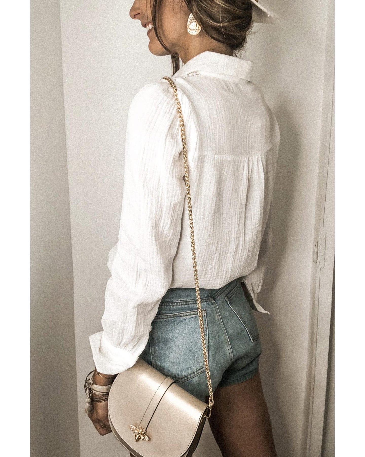 - Luxurious and stylish Floral Lace Hollow-out Splicing Crinkled Shirt