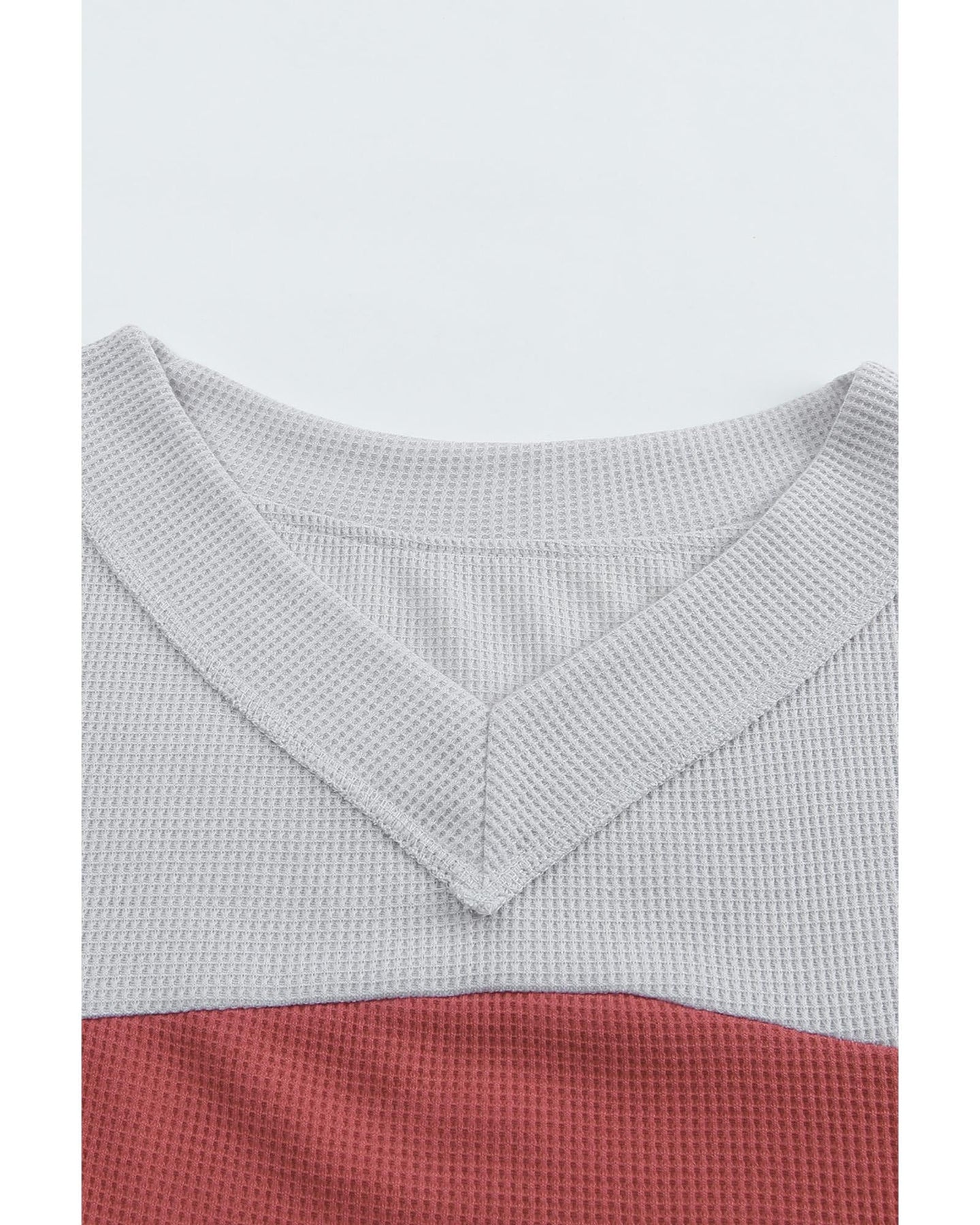 - Trendy and stylish Wild Leopard Contrast Sleeve Colorblock Waffle Knit Top