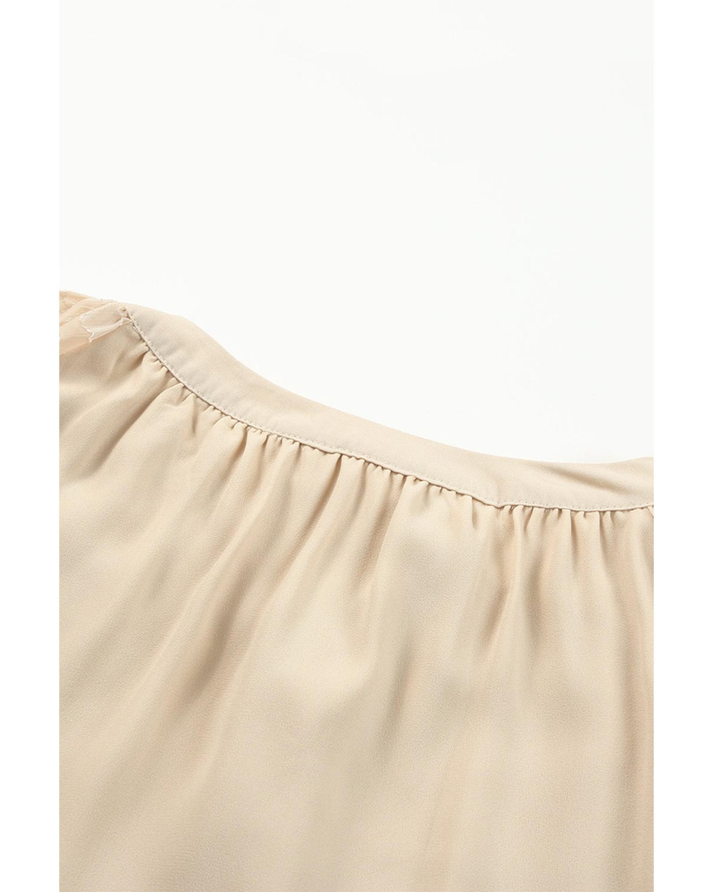 • Beige Leopard Mesh Bubble Sleeve Split Neck Blouse