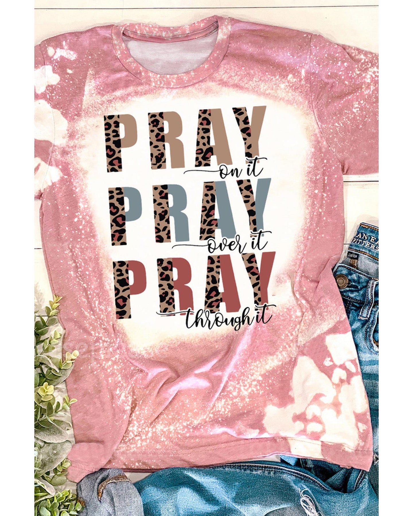 - Stylish and trendy PRAY Leopard Tie Dye Short Sleeve Graphic Tee