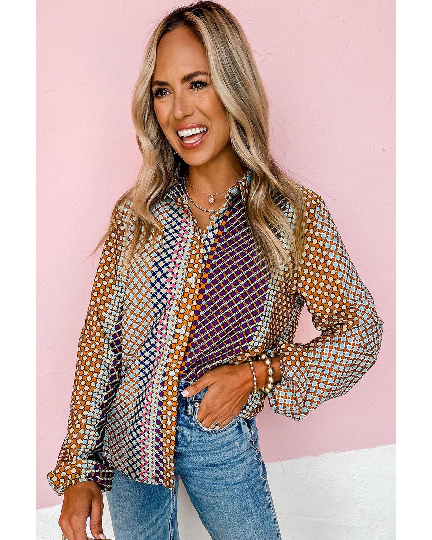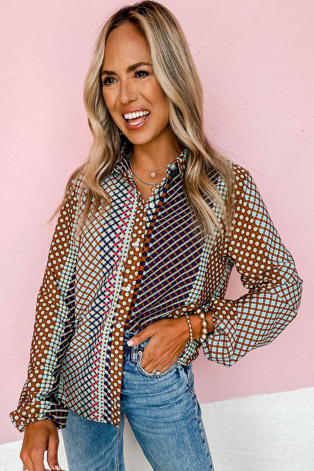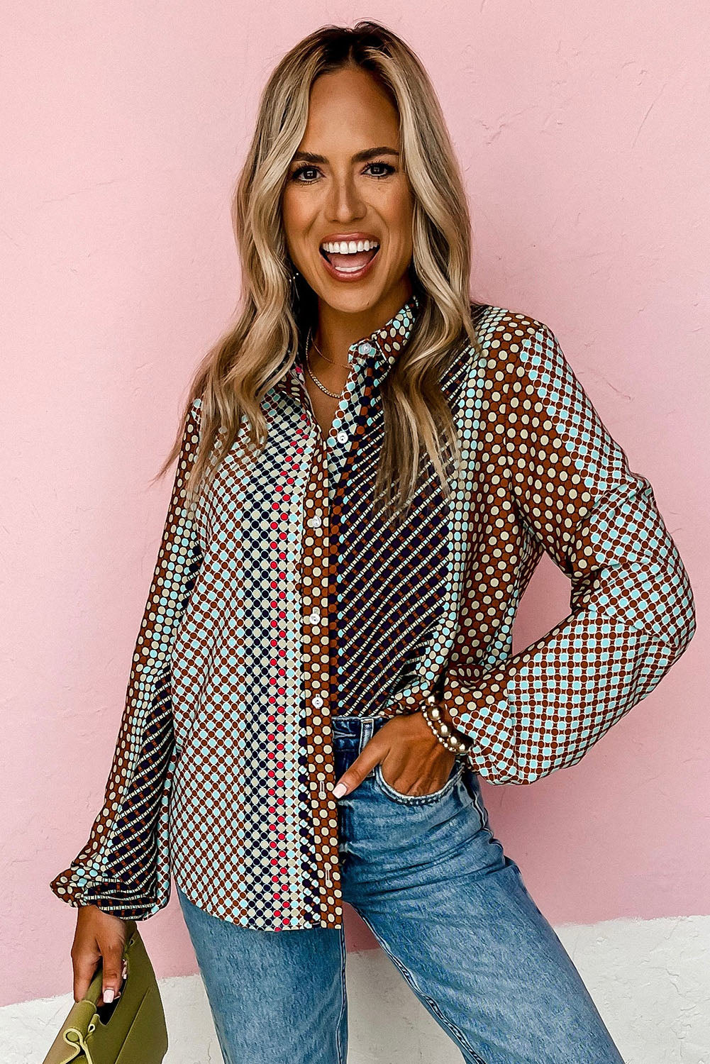 • Dot Print Long Sleeve Button Down Shift Shirt