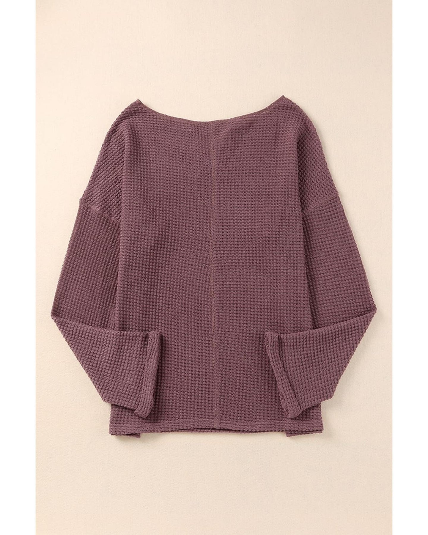 - Luxurious Waffle Knit Loose Long Sleeve Top