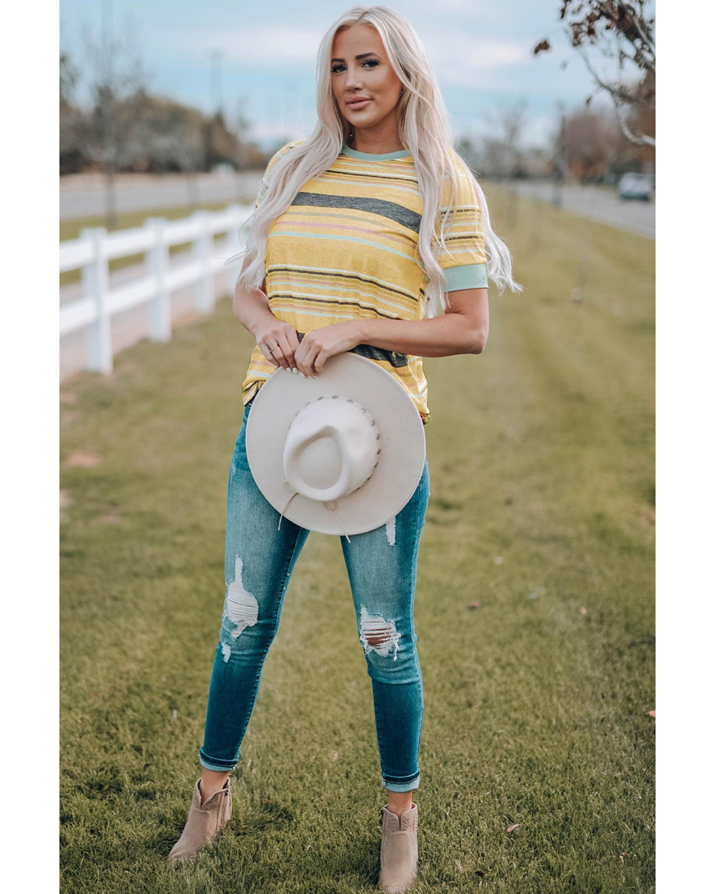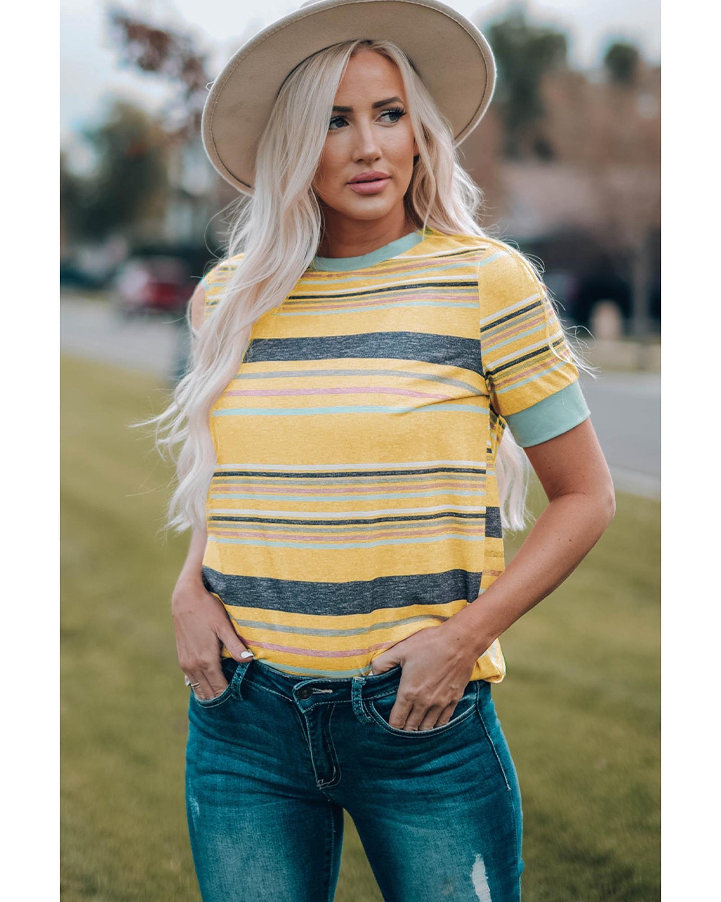 - Stylish and versatile Multicolor Stripes Crew Neck T-Shirt