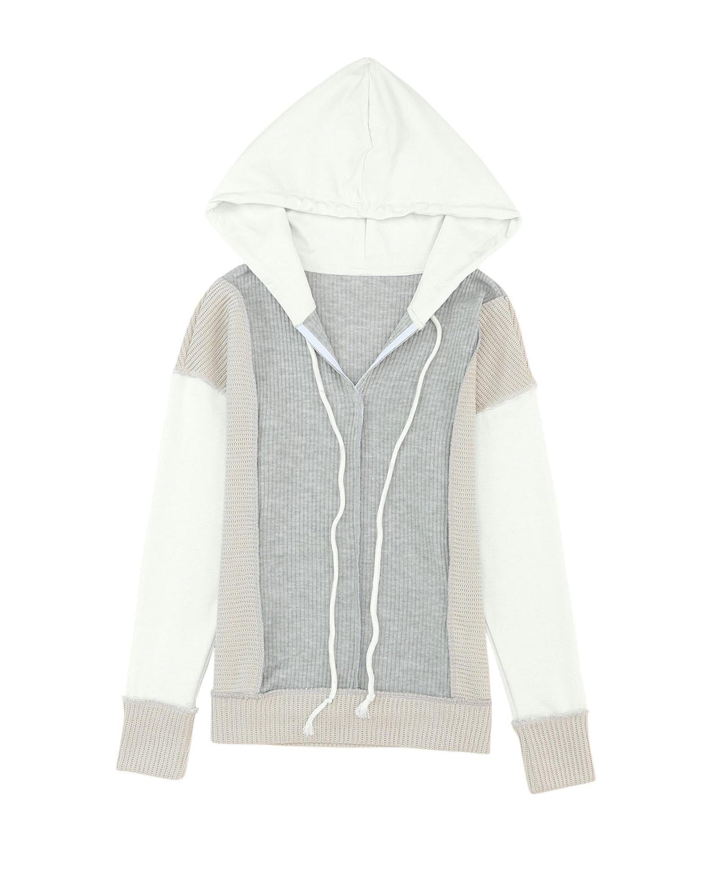 - Stylish and cozy Long Sleeve Textured Knit Patchwork Hoodie