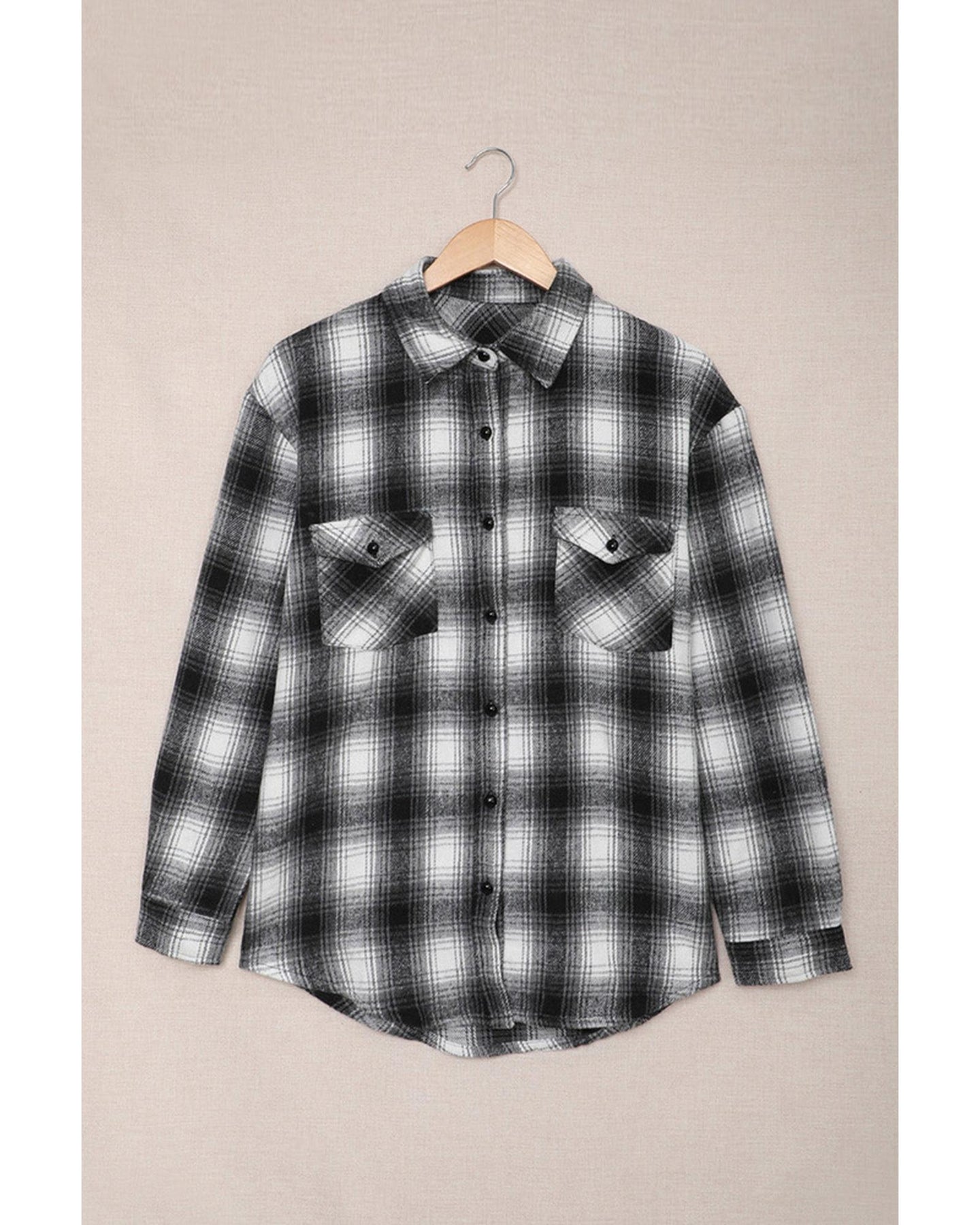 - Trendy and versatile Buttons Pocketed Plaid Shacket