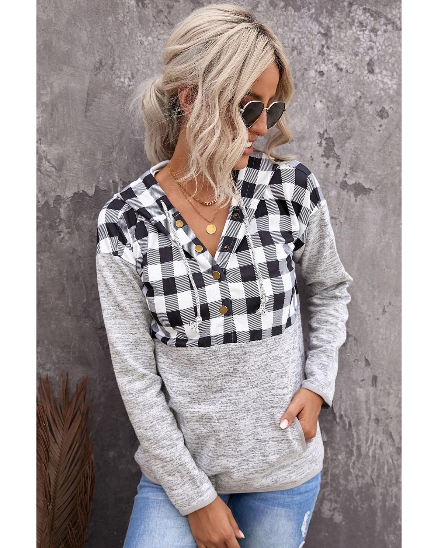 - Stylish and comfortable Plaid Splicing Pocketed Hoodie